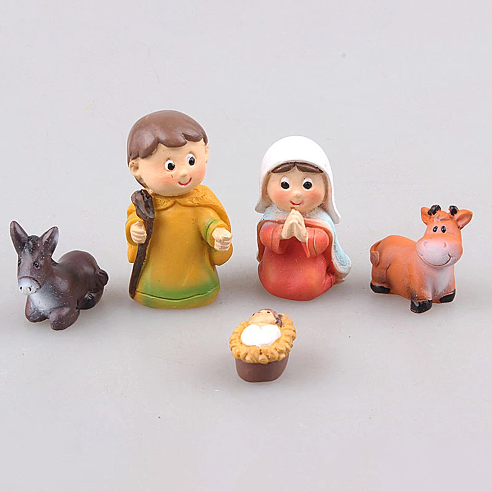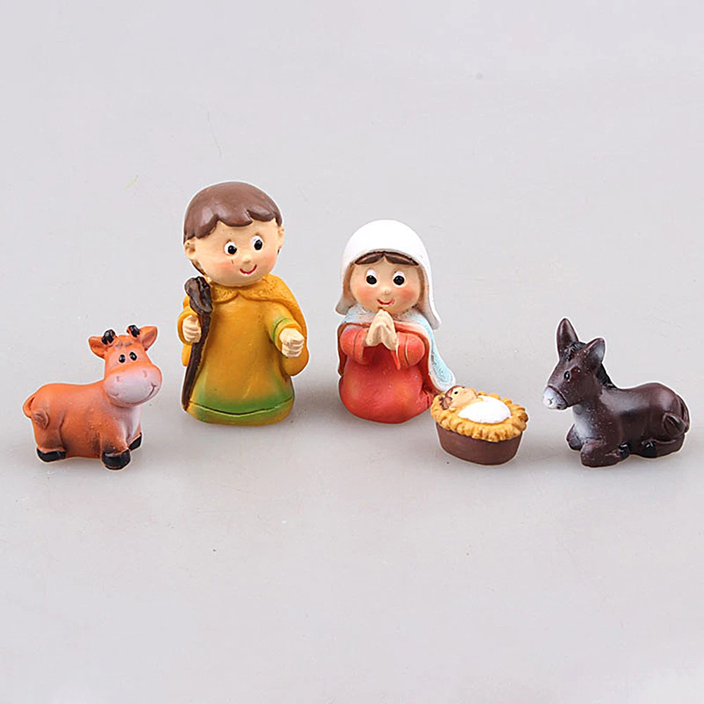 Bullet Points: Elaborate Craftmanship: Crafted from eco-friendly resin, this stunning nativity scene with meticulous details is waterproof, wear-resistant, and fade-resistant, bringing each figure to life Reflects The Essence: Classic design with 5 separate sections, showcasing Baby Jesus, Mary, Joseph, alongside sheep and donkey, reflecting the cherished Christmas story Add Color To Your Home: Displaying the Christmas nativity scene figurines expresses the ideals shared among family members of love, faith, and devotion. The intricate details of this set make it a perfect centerpiece for any home, being both a decoration and educational tool for the whole family Wide Range of Uses: Transform your holiday decor with our Nativity scene figurines. Create a cozy atmosphere by placing it on bookshelves, desktops, or nightstands. Use it as a centerpiece on family dinners or add a festive touch on your kitchen shelf. A versatile decorative piece to elevate your holiday charm Surprising Present: Celebrate the holiday season in a meaningful way with our Christmas nativity scene figurines. Each piece symbolizes blessings and respect, a perfect choice for those who cherish their faith. Share God's grace and love with this thoughtful religious presentthat expresses affection and respect This Christmas nativity scene is beautifully crafted with meticulous details, including Baby Jesus, Mary, Joseph, sheep, and donkey. It shares religious values at home and can be placed in the kitchen, on a bookshelf, or anywhere you like. Perfect for the holiday season, this figurine set makes a thoughtful and meaningful choice for anyone who values the true meaning of Christmas. Specification. Name: Christmas nativity figurine Material: resin Product size: about 2.5x2x4.5cm/0.98x0.79x1.77 inches (see picture for specific size) Quantity: 5 pcs Packing List Christmas nativity figurine x 5