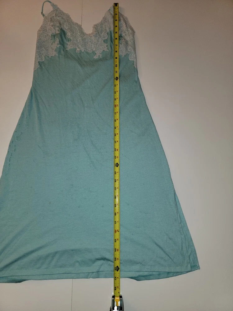This is a Natori nightgown in size Small, featuring spaghetti straps and lace detailing. It is a sleeveless pullover gown in a light blue color, made of a blend of polyester, nylon, elastane, and modal. The gown has a lightweight feel, perfect for summer and spring seasons. It comes in a set of two units.