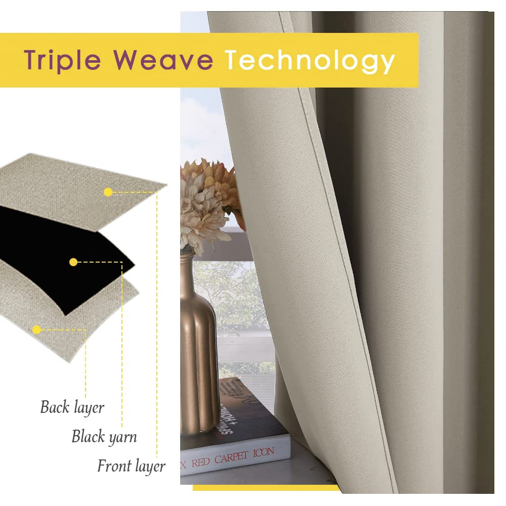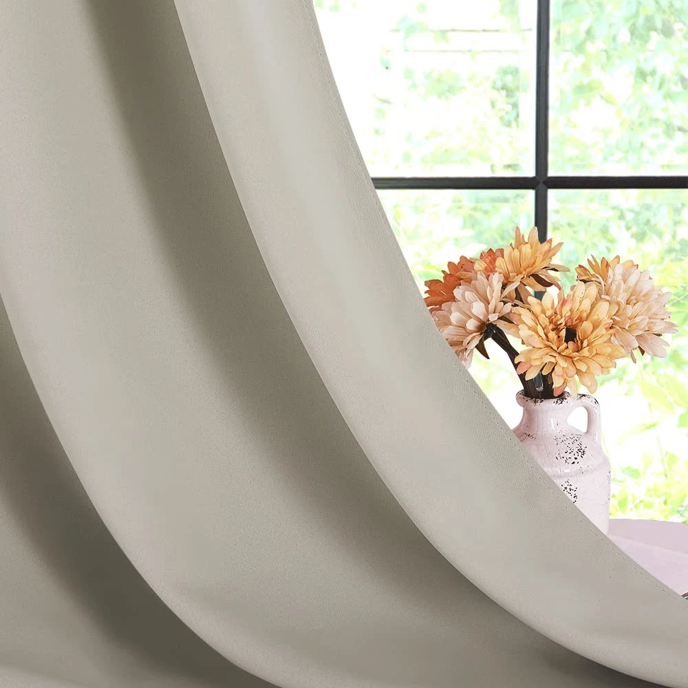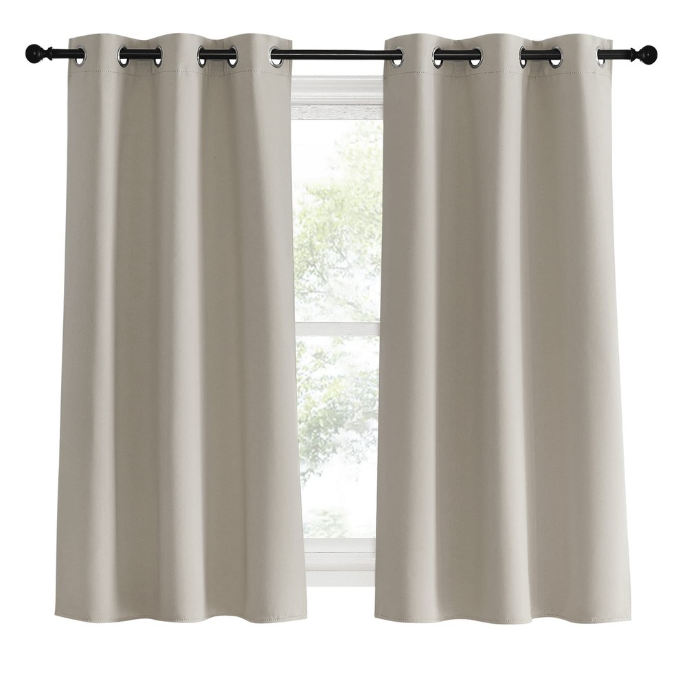 Blackout Curtains are so much more than just bits and pieces of fabric that are sewn together to prevent sunlight from entering your home, they go beyond that mundane function and provide additional benefits that do not meet the eye instantly. Light Blocking Energy Savers. Having the heavy, multi-layered microfiber blackout window curtains or drapes can make a world of a difference in reducing the amount of light that comes in from outside, which has green-conscious consumers excited about investing them as energy-efficient window treatments. A home insulated and remains warmer in wintertime relieves the strain on home heating and reduces 25 percent energy budget at most. Sleep Soother n Noise Buffer. It's hard to get babies to take a rest during the day when the sun is streaming brightly through a bedroom window. Blackout curtains encourage the best possible sleep and most comfortable setting for day sleepers and the ones who have trouble falling asleep, by automatically darkening and lowering noise levels. Absolute Privacy n Relax. Not only that but also make your resting zone truly blissful. They would be perfect for any home theater and supply you with the enjoyment of watching TV in real darkness. If you are looking for great and cost-effective ways of re-inventing the look of your home, readymade curtains would be the game changer in your shopping cart. They are crafted for the topmost and luxury, coming with the strong grommet ring top for easy installation and smooth sliding over a rod. Each curtain panel is carefully ironed and ready to serve as your window dressing. What color do you like? ELEGANT DESIGN: 2 panels per package. Each Blackout Curtain measures 34" wide x 60" long. The design of silver grommet (1.6-inch inner diameter) creates casual elegance for your house, which makes the curtains easy to install and slide. MULTI-FUNCTION: Super heavy and soft Blackout Curtain Panels are very upmarket. Besides, 85%-99% light blocking, thermal insulated, soundproof, Fade-resistant, energy-efficient. Thread trimmed and wrinkle-free, both sides are the same color. WISE CHOICE: Protect your furniture and floors from sun exposure, while enhancing the energy efficiency of your home. Enjoy added privacy with our curtains, designed to ensure a restful night's sleep that leaves you energized each day. WIDE COMPATIBILITY: Don't bother looking for valance to match, choosing different styles of blackout valance with the same color in the store. Such curtain sets provide a more permanent harmonious window dressing. EASY TO MAINTAIN: blackout curtains are made to last. Machine washable in cold water, tumble dry. Quick ironing or steam clean when needed. Visiting the store, find out your favorite curtains.