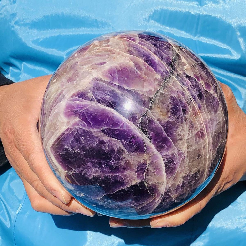$ 159.7512.97KG Natural Amethyst Quartz Crystal Sphere Ball for Healing 2719
