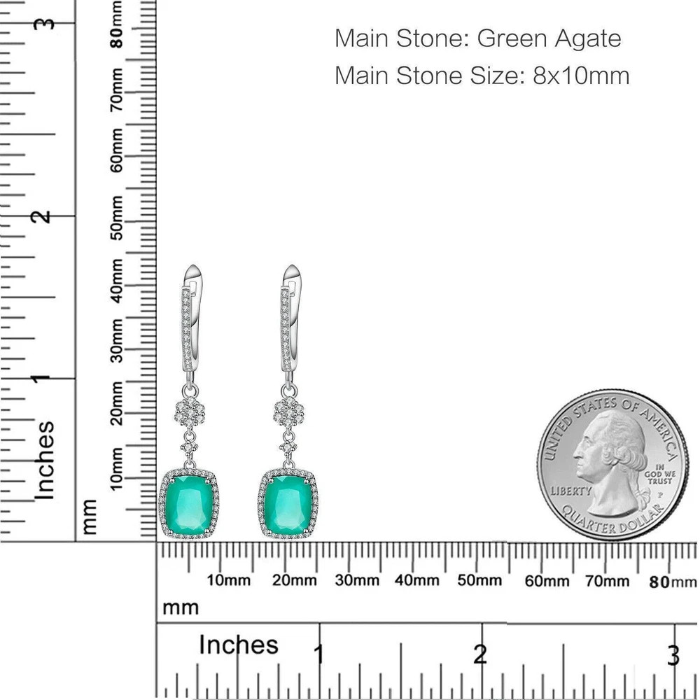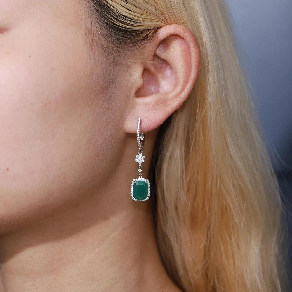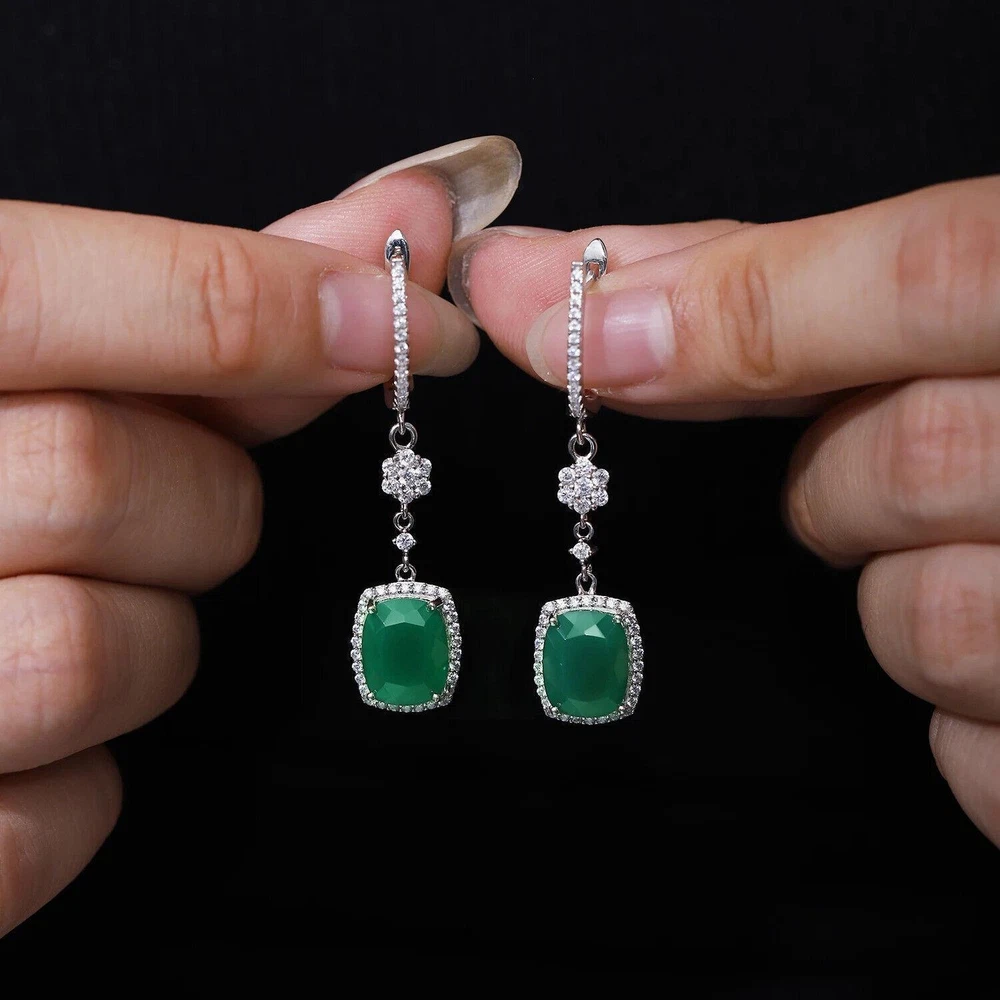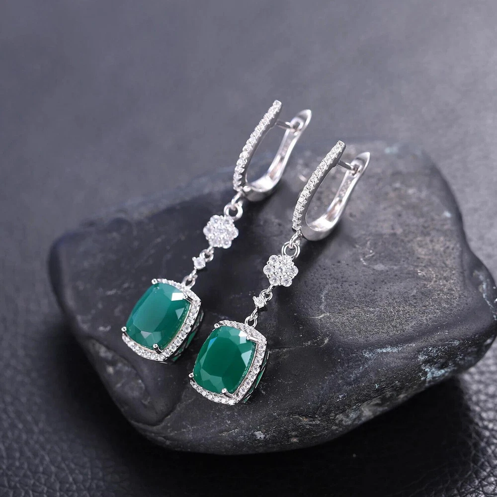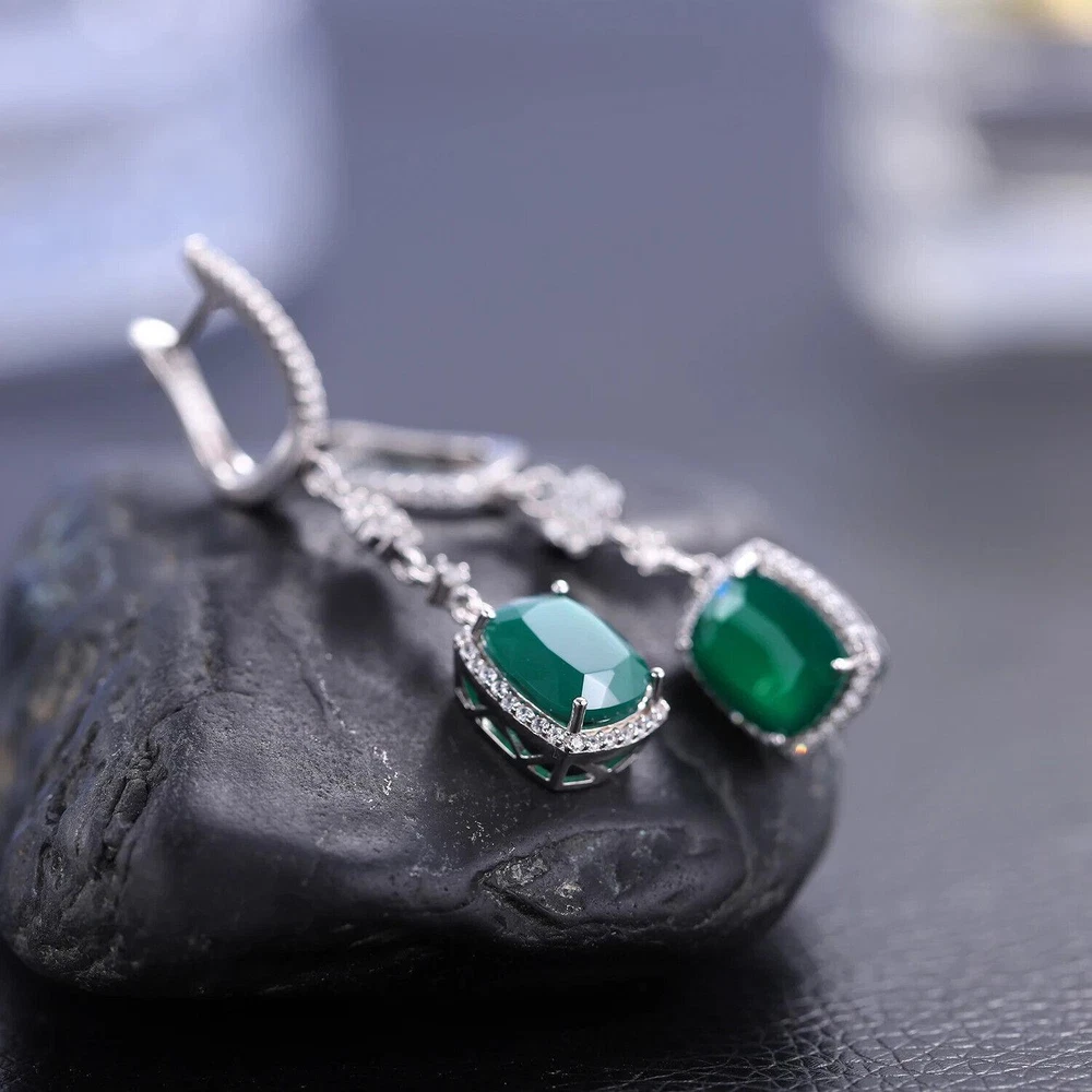 Total Carat Weight:4.43ctMetal Purity:925 Parts Per 1000Main Stone Color:GreenBrand:UnbrandedOccasion:Anniversary, Birthday, Engagement, Valentine's Day, Wedding, PartyHandmade:YesType:EarringsMain Stone Creation:NaturalStyle:Dangle/DropBase Metal:Fine Silver, 925 Parts Per 1000Certification:GTCTheme:BeautyMaterial:GemstoneSecondary Stone:Cubic ZirconiaMain Stone Size:8*10mmMain Stone:AgateMetal:Sterling SilverMain Stone Shape:Emerald