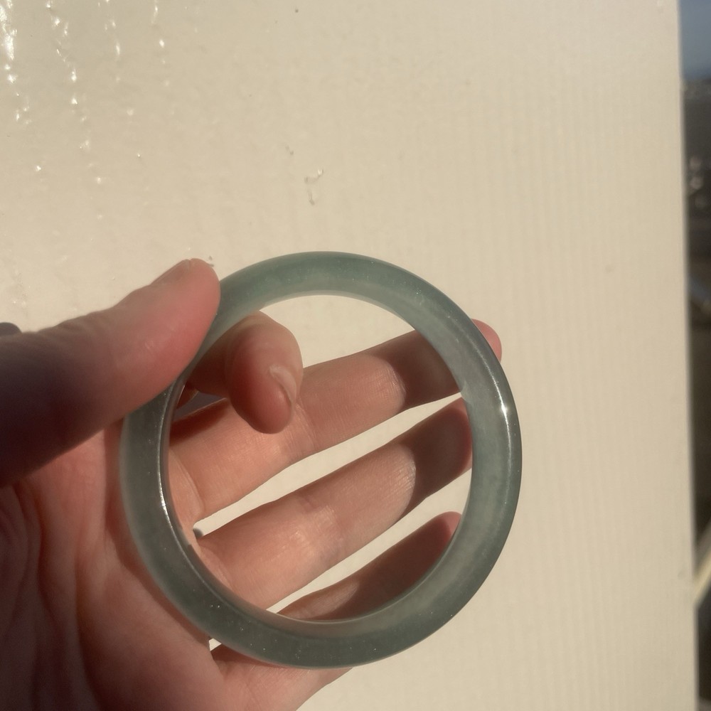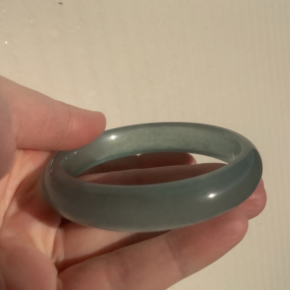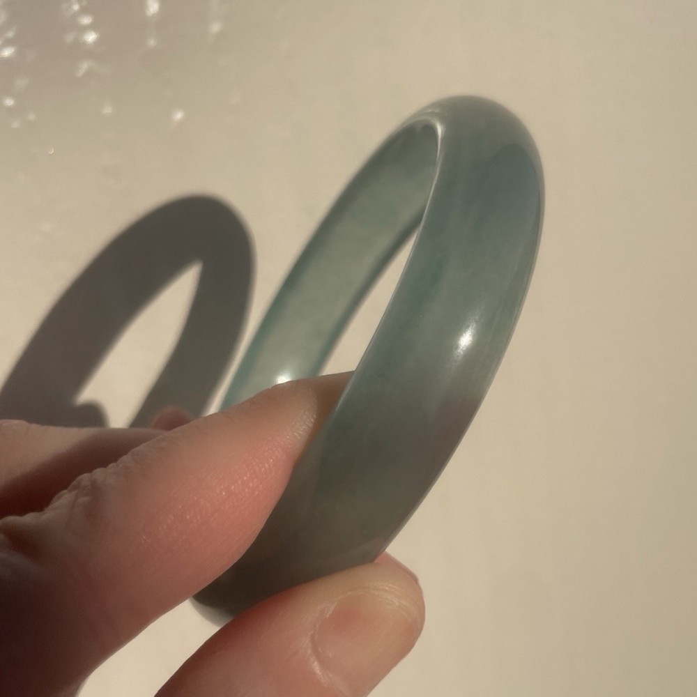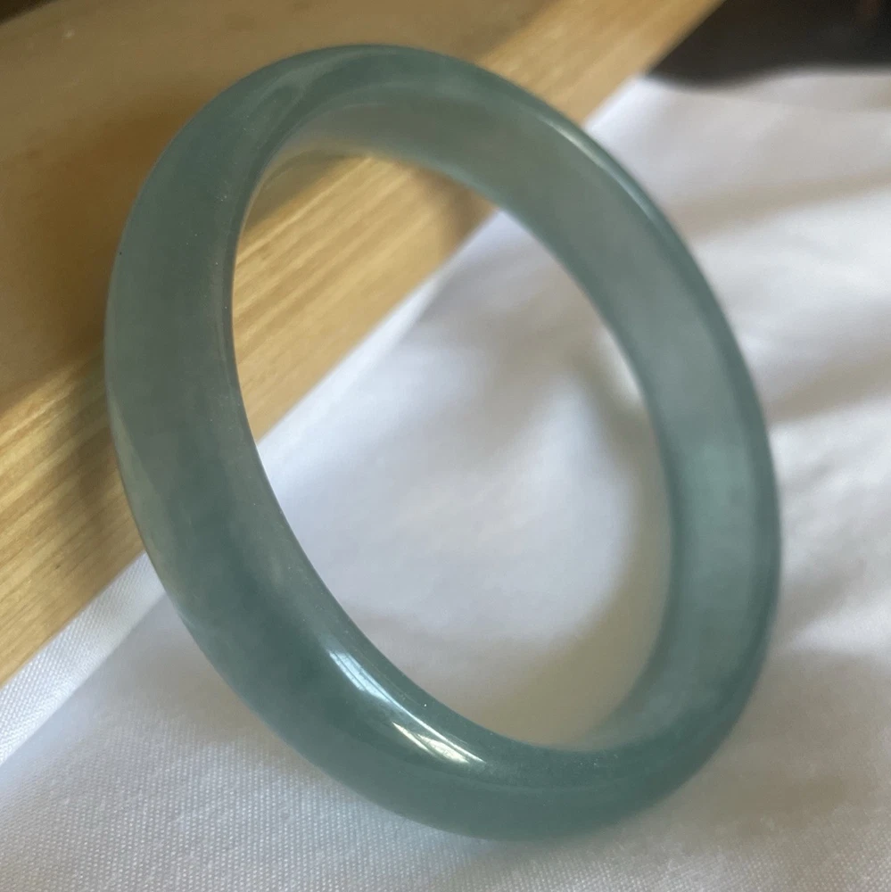 This Natural AAAABlueGreen Burmese JADE Bangle is a stunning piece of fine jewelry perfect for various occasions like Mother's Day, weddings, or birthdays. Featuring a round-shaped sea blue/green jadeite stone with a very good cut grade, this bangle is handmade and crafted from natural materials sourced from China. The traditional charm of this bracelet makes it a unique and elegant addition to any jewelry collection, showcasing the beauty of nature through its flawless design. More Info- often has visible natural formation marks—such as cotton-like inclusions, silk-like cotton, or tiny fissures—because it is a natural, non-homogenous crystal structure. These markings are evidence of its organic growth, representing mineral inclusions (like chromium or iron oxide) or internal stress cracks that did not fully