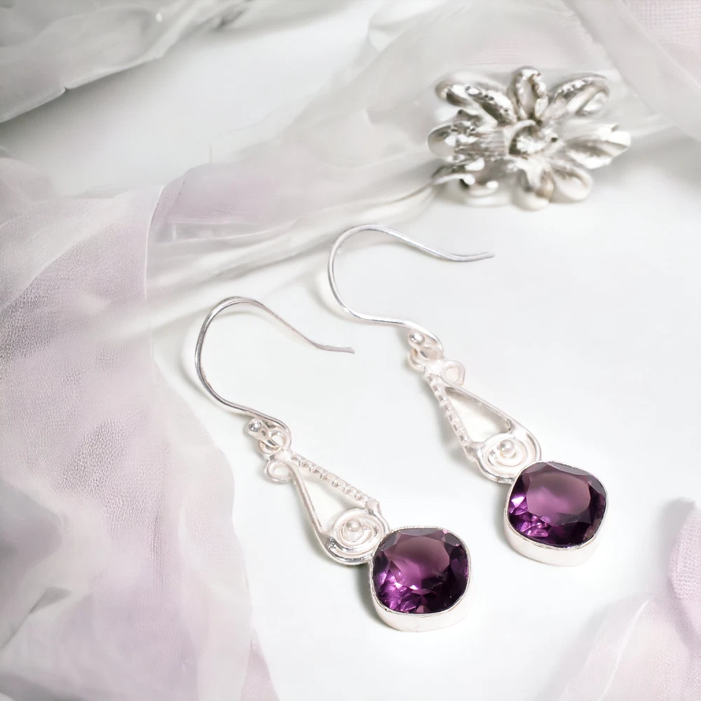 Welcome to Jaipur Silver Gallery Natural Amethyst Gemstone 925 Sterling Silver Drop/Dangle Earrings For Girls Handmade Earrings, Sterling Silver Earrings, Amethyst Earrings, Handcrafted Earrings SKU : - GSE-171 Gemstone : - Amethyst Stone Shape : - Cushion Metal : - Sterling Silver Metal Purity : - 925 Earring Length : 1.9 Inches Earring Width : Inches _______________________________________________________________________________________ Amazing Properties of Silver ****************************** Tough and Long-lasting: Silver is incredibly strong, built to withstand daily wear and tear as well as tough environmental conditions. Easy to Shape and Design: Silver is like clay for skilled craftsmen, allowing them to create beautiful and intricate designs effortlessly. Great at Conducting Energy: When it comes to heat and electricity, silver is the go-to. It can quickly and efficiently transfer energy, making it ideal for various applications. Keeps Things Clean and Safe: Silver has a natural ability to keep harmful bacteria at bay, making it a reliable choice for promoting cleanliness and well-being. 3 Underrated Benefits Of Silver ****************************** Gorgeous Charm: Silver jewelry shines brightly, enhancing any outfit and fitting everyone's style with ease. Gentle on Skin: Silver is kind to your skin, reducing the chance of allergies and making it a favorite choice for accessories. Healing Vibes: Some believe silver jewelry has a soothing touch, possibly aiding in easing issues like arthritis, anxiety, and the blues. _______________________________________________________________________________________ For Mother's Day Gift For Father's Day Gift For Promise For Valentine' Day For Halloween Party For Christmas Day Gift For New Year Party For Mom For Her _______________________________________________________________________________________ If you need more help or want design tips, just give us a shout! We're lightning-fast in getting back to you. Every single thing we create is made by hand in our special workshop, and we put a whole lot of love and care into every piece. Thank you for stopping by! We're confident you'll have an amazing time shopping with us. We're here to make sure every moment you spend with us is filled with delight and satisfaction. Happy shopping!