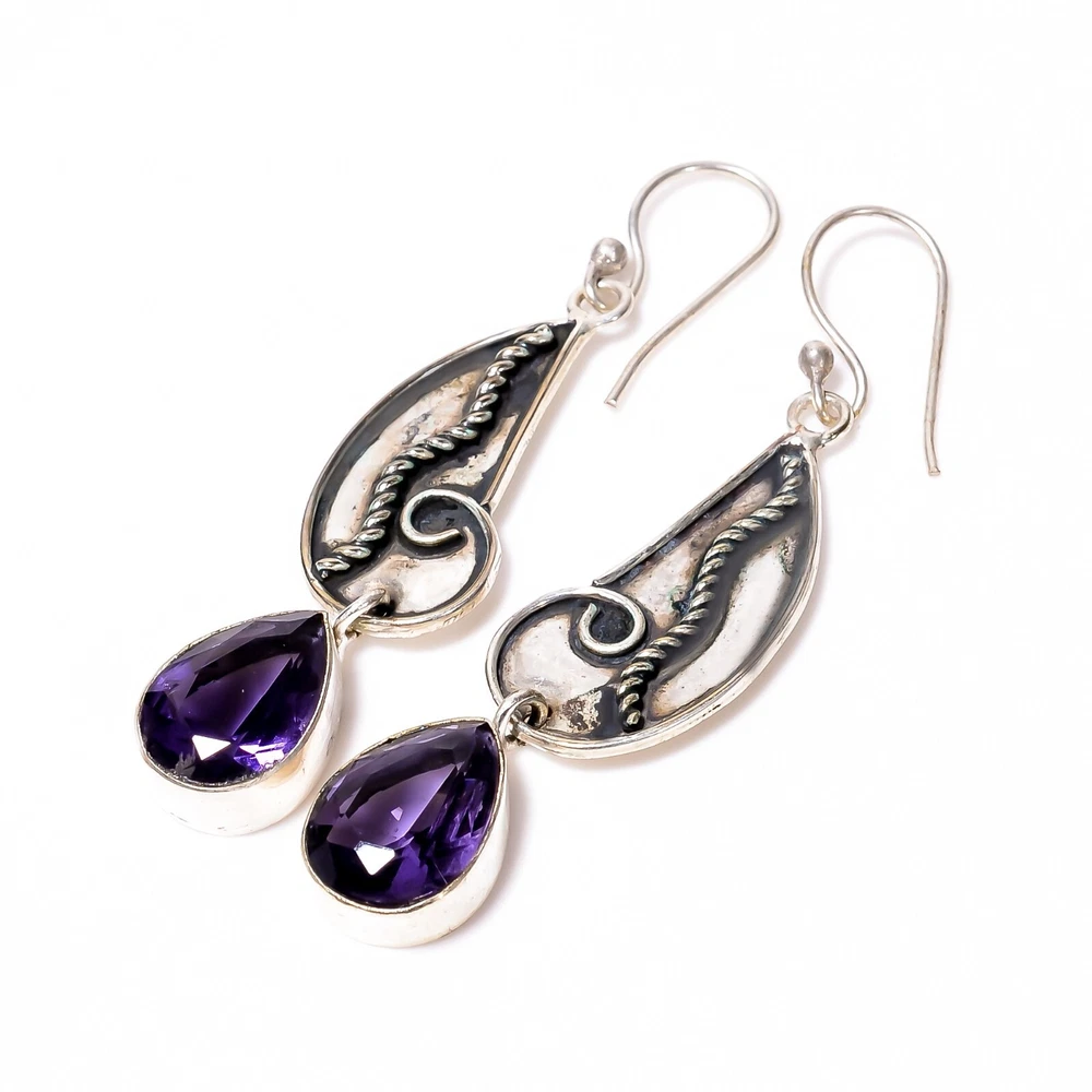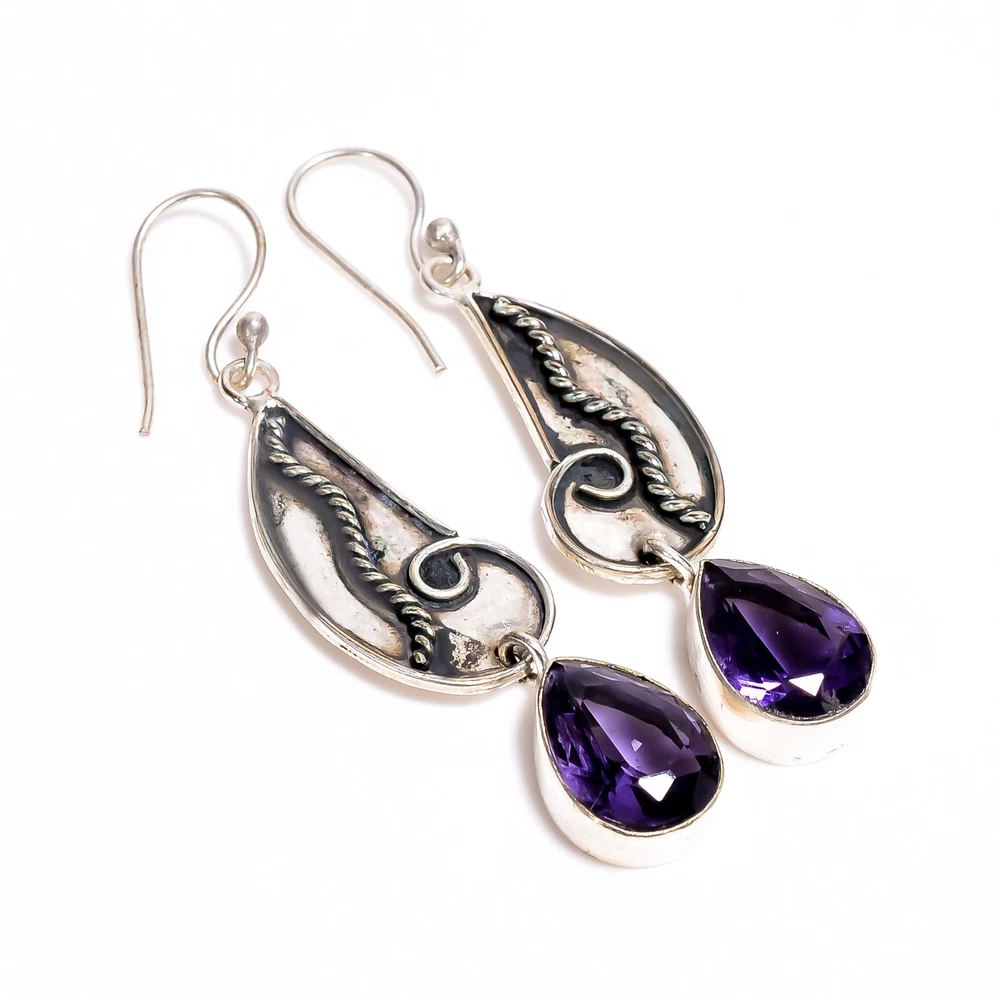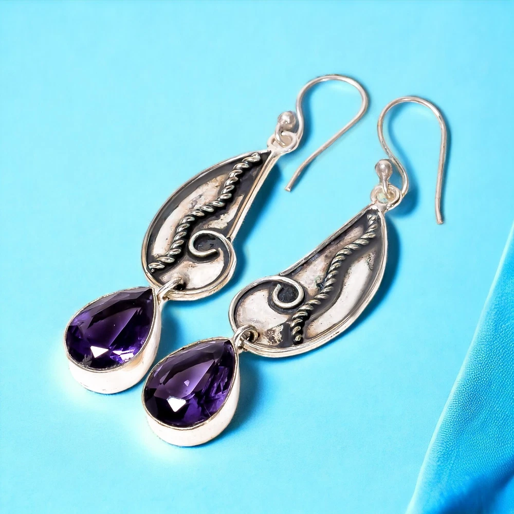 Welcome to Jaipur Silver Gallery Natural Amethyst Gemstone Drop/Dangle Dailywear Earrings 925 Sterling Silver Handmade Earrings, Sterling Silver Earrings, Amethyst Earrings, Handcrafted Earrings SKU : - JSUKE-1854 Gemstone : - Amethyst Stone Shape : - Pear Metal : - Sterling Silver Metal Purity : - 925 Earring Length : 2.4 Inches Earring Width : Inches _______________________________________________________________________________________ Amazing Properties of Silver ****************************** Tough and Long-lasting: Silver is incredibly strong, built to withstand daily wear and tear as well as tough environmental conditions. Easy to Shape and Design: Silver is like clay for skilled craftsmen, allowing them to create beautiful and intricate designs effortlessly. Great at Conducting Energy: When it comes to heat and electricity, silver is the go-to. It can quickly and efficiently transfer energy, making it ideal for various applications. Keeps Things Clean and Safe: Silver has a natural ability to keep harmful bacteria at bay, making it a reliable choice for promoting cleanliness and well-being. 3 Underrated Benefits Of Silver ****************************** Gorgeous Charm: Silver jewelry shines brightly, enhancing any outfit and fitting everyone's style with ease. Gentle on Skin: Silver is kind to your skin, reducing the chance of allergies and making it a favorite choice for accessories. Healing Vibes: Some believe silver jewelry has a soothing touch, possibly aiding in easing issues like arthritis, anxiety, and the blues. _______________________________________________________________________________________ For Mother's Day Gift For Father's Day Gift For Promise For Valentine' Day For Halloween Party For Christmas Day Gift For New Year Party For Mom For Her _______________________________________________________________________________________ If you need more help or want design tips, just give us a shout! We're lightning-fast in getting back to you. Every single thing we create is made by hand in our special workshop, and we put a whole lot of love and care into every piece. Thank you for stopping by! We're confident you'll have an amazing time shopping with us. We're here to make sure every moment you spend with us is filled with delight and satisfaction. Happy shopping!