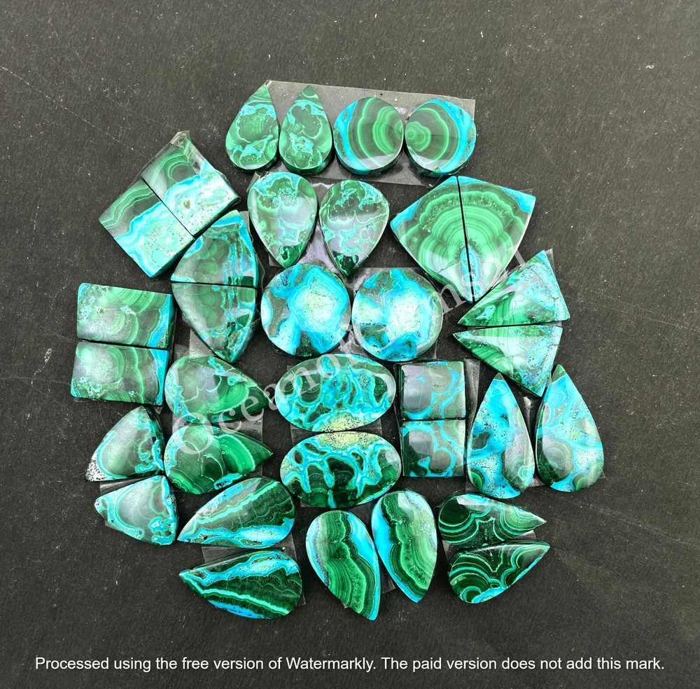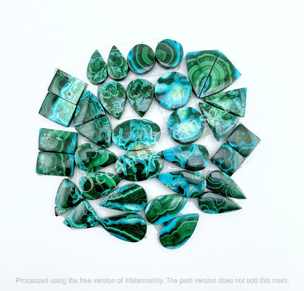 Products Description Awesome Top Grade Natural Green Azurite Chrysocolla , loose mix Shape Cabochon Gemstones For Making Jewelry, Hand Made Flat Back Loose Gemstone lot Handmade item 👐 Free beautiful gift with 49$ Purchase or above Free Worldwide Shipping Free Express Shipping on $149 Purchase or above Polish - Hand polished, Super shiny💎 Size - Minimum 15 MM To Maximum 35 MM Approximately Color - As Seen As Picture Shape:- Teardrop, Pear, Round, Square, Rectangular, Marquise, Radiant, Fancy ( Mix Shape and Size) Material : Rocks & Minerals, Gemstones Treatment - Natural Back Side - Flat Back Quality:- AAA Free Drilling services · Special Discount on Wholesale & Bulk Orders. Contact us for special prices. · We offer all types of customization regarding shapes, sizes, and anything else according to your requirement, and if possible we will try our best to do the same as per your choice. Photos and videos are taken into natural light and flash, Photos/Videos' color can be slightly different and may vary in comparison to the actual gemstones due to the nature of photography and your screen resolution and color settings. PAYMENT METHODS We accept PayPal, Payoneer and rest other modes of payment also accepted. It is easy and safe for you to pay by credit cards, debit cards, bank transfers and PayPal account balances. Payment should be made within 2 days since the winning of the item. SHIPPING POLICY US shipping - Free Shipping International-Free Shipping Each item is individually packed securely with quality products to help ensure safe and undamaged delivery. We ship within 1 business days after payment is received. Delivery is generally within 10-15 days worldwide after shipping. In rare cases it makes take up to 2-3 weeks for delivery depending upon the destinations and customs regulations in your country. All packages have a duly filled custom declaration form in order to avoid and delay in customs. RETURN POLICY Your satisfaction is of the utmost concern to us. Should you need to return an item, you can do so within 30 days of receipt of the item for a full refund. Return shipping charges are not reimbursable. All items must be in their original condition, not worn or altered. Please contact us if you would like to initiate a return, so that we may guide you through the process. We can be reached through the "Ask a Question" link on the listings. FEEDBACK We strive for 100% Customer Satisfaction and we always leave positive feed backs to our buyers. Please help us maintain our business and give a 5-Star rating .If you still think that you still can’t leave a 5-Star across the Board, please email us or call us and we assure you that your issue will be resolved immediately. We believe in solving the issues. A positive feedback represents our service, product quality and dedication towards customer's satisfaction. Our future business depends on your satisfaction or positive feedback with "5-star rating". Your feedback is so important to us, without your feedback and reviews, We can’t exist. If you think we have done a good job, we would appreciate it if you would leave us your positive feedback. If you are not satisfied for any reason, please contact us before leaving any negative feedback. Let us make it right. Contact us and we will do whatever it takes to make you happy. Note - If you have any questions or doubts about products and services please feel free to contact us. We will happy to help you. If you looking for anything that you are unable to find or we have not listed in our shop kindly let us know, if possible, we will make or try to arrange what you are looking for. Thanks for purchasing. Have a wonderful day🤗 -: OceanofGems :-