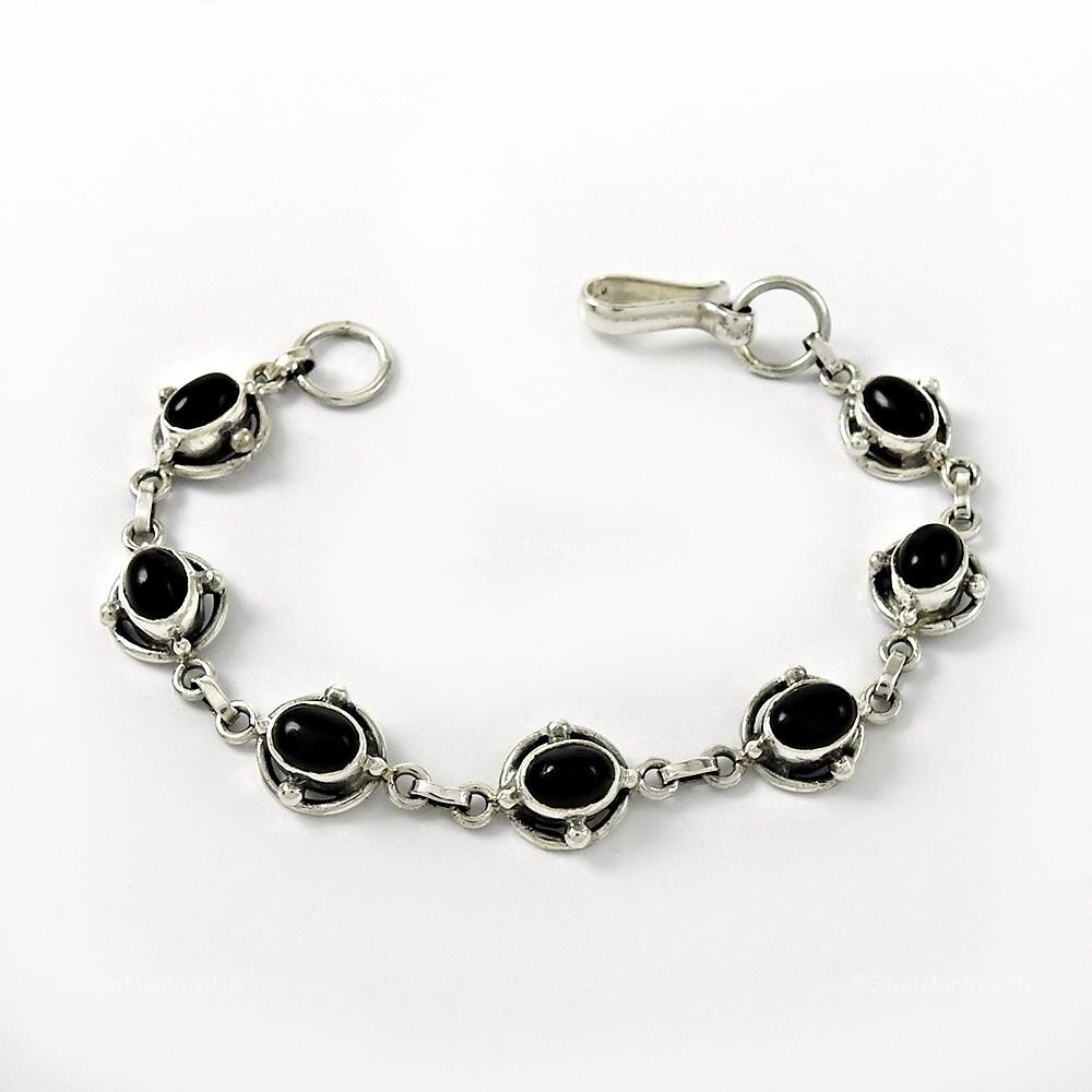 Welcome to Silvermantra2016 New Year Deal Natural Black Onyx Solid Sterling Silver Ethnic Chain Bracelet This stunning bracelet is a perfect gift for any special occasion. With its unique design and beautiful black onyx stones, it is sure to make a statement. The bracelet is handcrafted and engraved, making it a truly personal piece of jewelry. The bracelet is 7.09 inches in length and made of sterling silver. It features a bezel setting style and a bohemian theme, making it a perfect addition to any jewelry collection. The bracelet is nickel-free and comes with a seller warranty. Order now and add a touch of beauty and luck to your life. Why silvermantra2016 ? Pure 925 Sterling Silver Jewelry. No alloy and brass nothing. We do not use any type of chemical in our plating process to enhance the shine & luster of the metal which are harmful to your skin. We use high quality stones which gives even better radiance than real gemstones. Customization We offer customization on each product at reasonable price. If you have a design in mind, we can manufacture customized products as well. Gemstone Elegance Choose from a dazzling array of gemstones, including Turquoise, Garnet, Tourmaline, Black Onyx, Tiger Eye, Onyx, Lapis Lazuli, Rainbow Moonstone, Labradorite, Amethyst, Citrine, Cubic Zirconia, Amber, Aquamarine, Rhodochrosite, Amazonite, Aventurine, Azurite, Malachite, Opal, Carnelian, Chalcedony, Chrysoprase, Jasper, Agate, Iolite, Topaz, Larimar, Peridot, Pearl, Prehnite, Ruby, Emerald, Smoky Quartz, Coral, Rutile Quartz and more. Each gemstone boasts unique beauty and energy to enhance your aura. Exquisite Designs Choose from an array of captivating designs, including intricate nature-inspired motifs, timeless classics, and modern interpretations. Our women's gemstone Bracelet cater to your unique style preferences. Diverse Gemstone Selection Explore a vast range of gemstones, each connected to specific birth months and symbolic meanings. Versatile Elegance Whether you're dressing up for a special event or elevating your daily attire, our gemstone Bracelet effortlessly transition from day to night, ensuring you shine in every moment. Value and Quality As proud manufacturers, we prioritize offering premium women's Sterling Silver Bracelet with gemstones at the most affordable prices. Our commitment to value means you can indulge in exceptional jewelry without breaking the bank. ShippingPolicy We do ship worldwide by Registered & Express mail with tracking number. Shipping time takes up to 10 - 14 business days depending on location. All additional payments such as duties & taxes are the buyer's responsibility. We ship only to the approved address that registered in Payoneer. Note: In some cases delay your parcel as per our eBay global shipping partner conveyed us, that shipments may take 25 to 30 days also to reach you due to cross border and customs, delaying clearance of shipments. Note: All Jewelry photos are taken by professional’s photographers. They use many photo equipments, like Flash, Day Light etc. Brightness and contrast are also used in photo editing. So gemstones color can be little dark or light. Handling Time : 2 Business Days Return Policy We Deals in Handmade 925 Sterling Silver Gemstone Jewelry. In any case, if you are not satisfied with the product first, please contact us and we will try to satisfy you by resolving your concern. We only accept returns if product is having any manufacturing defect. If buyer open return request with these reasons like: don't like the item or changed mood, then buyer will have to pay return shipping charges. We didn't accept return of broken piece and stone. If buyer want to return, then return shipping charges will be paid by buyer. Feedback We give immediate positive feedback to our buyers as soon as payment is received in Payoneer. In any case of any problem contact us right away before leaving any Negative or Neutral feedback. We will do our best to resolve any problem and to make you satisfied. Thank you for shopping!