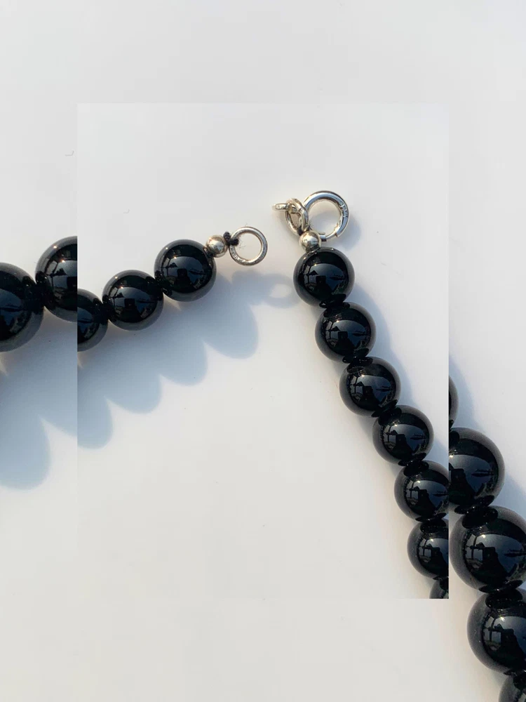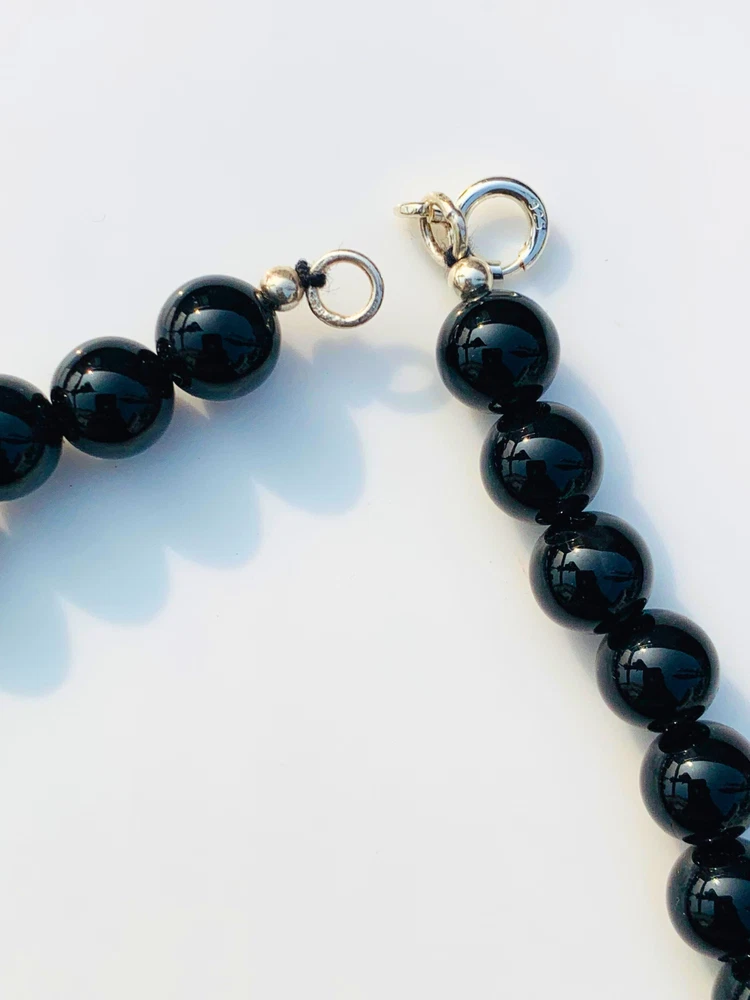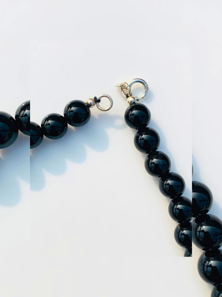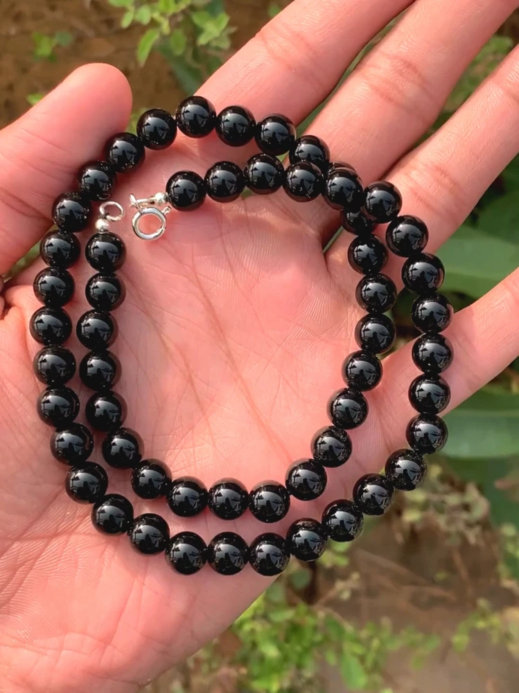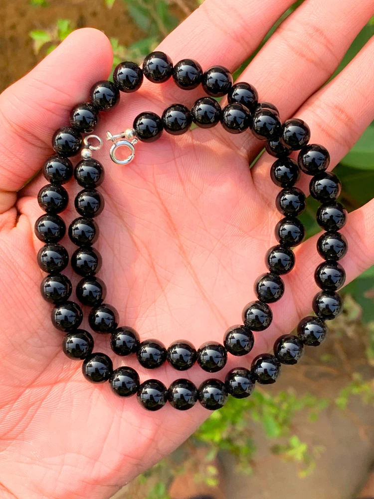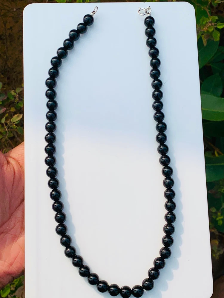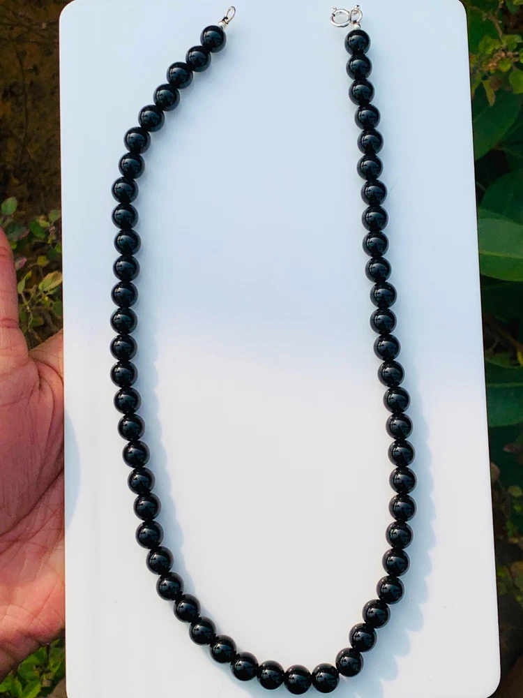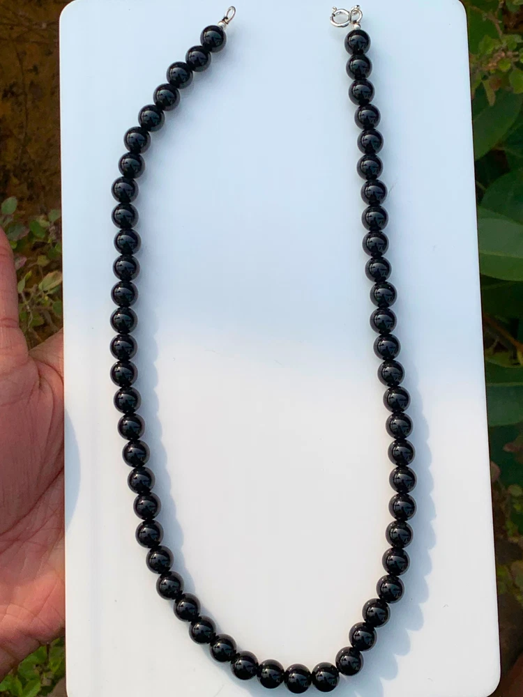 Natural Black Onyx Beads Necklace In Round Beads Healing Necklace Onyx Gemstone Bead Handmade Healing Necklace Onyx Beads Necklace For Gift Description 100 % Natural. Stone Name : Black Onyx Beads Size : 8mm Necklace Length : 16 Inch Country of Manufacture: India Stone Creation Method : Natural Polish : Both Side Hand Polished, ( Super Shiny ) Quantity :1 Piece . Material : Gemstone , Silver Brand: KumedanImpex. Product : Loose Gemstone Good quality product.