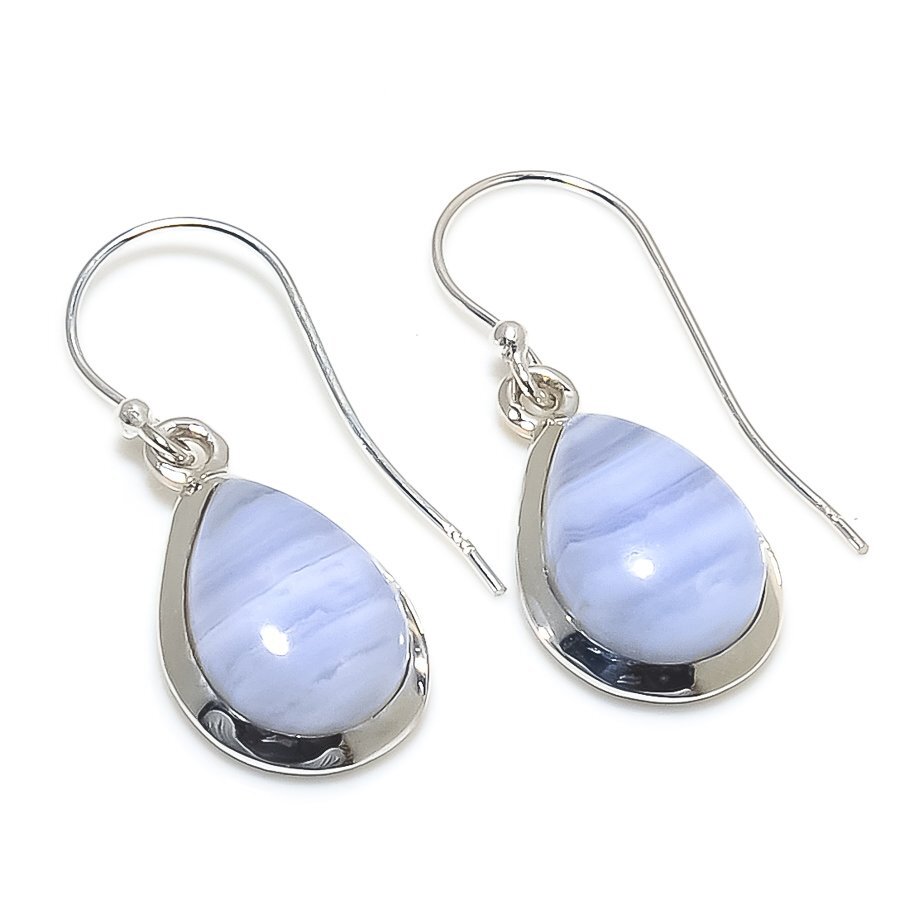 Natural Blue Lace Agate 925 Sterling Silver Earrings 1.25 Inch