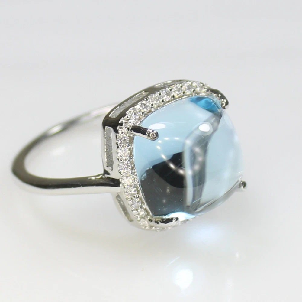 $ 4.92Blue Opal Cubic Zirconia 925 Sterling Silver Square Ring for Women