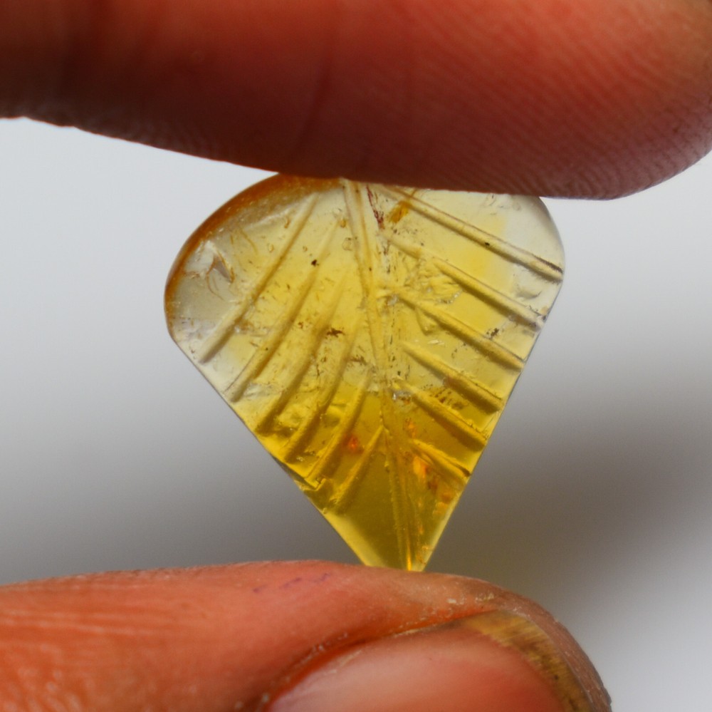 Natural Citrine Carving 4.05 Carats, Natural Citrine Leaf Gemstone For Jewelry