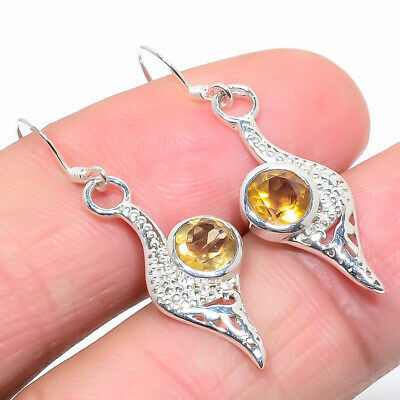 Natural Citrine Gemstone 925 Sterling Silver Handmade Earrings 1.50 Inches