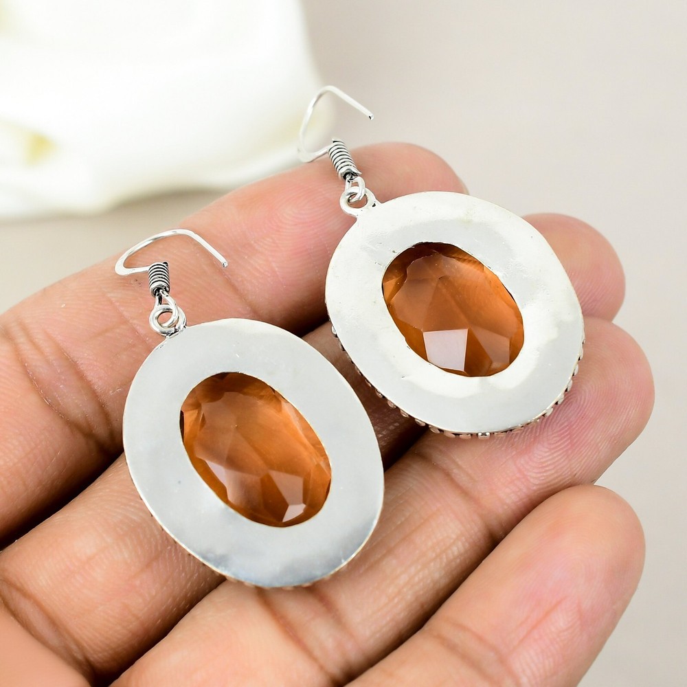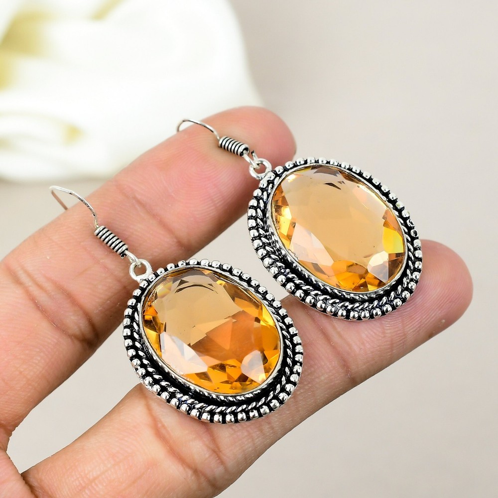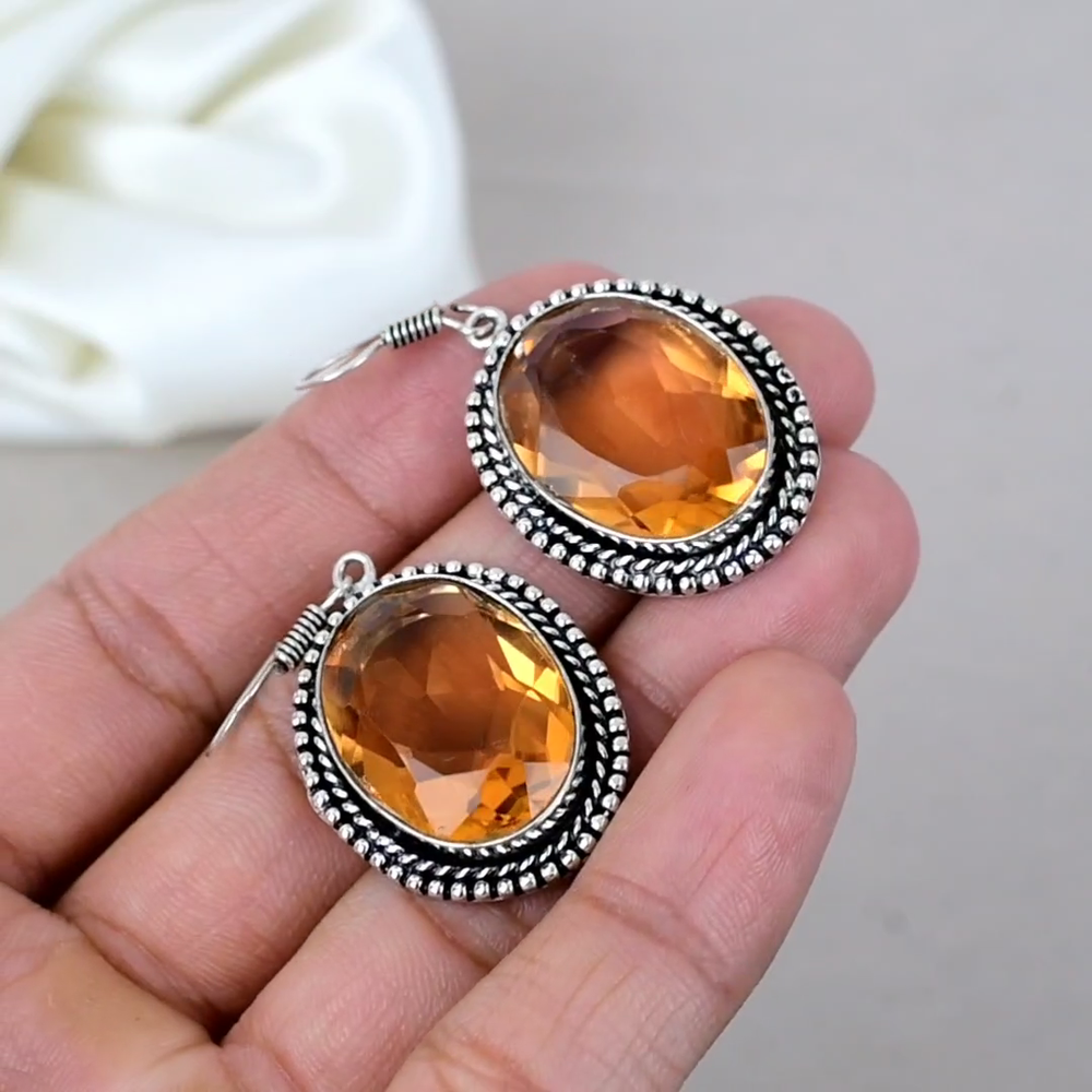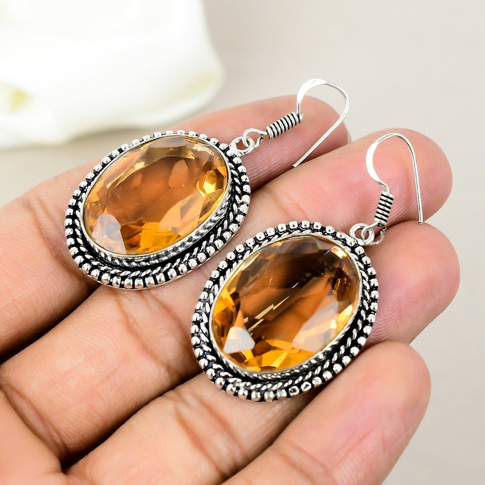 Natural Citrine Gemstone 925 Sterling Silver Handmade Earrings Wife Gift