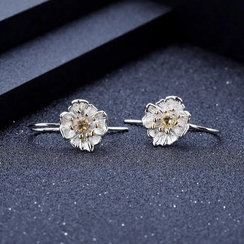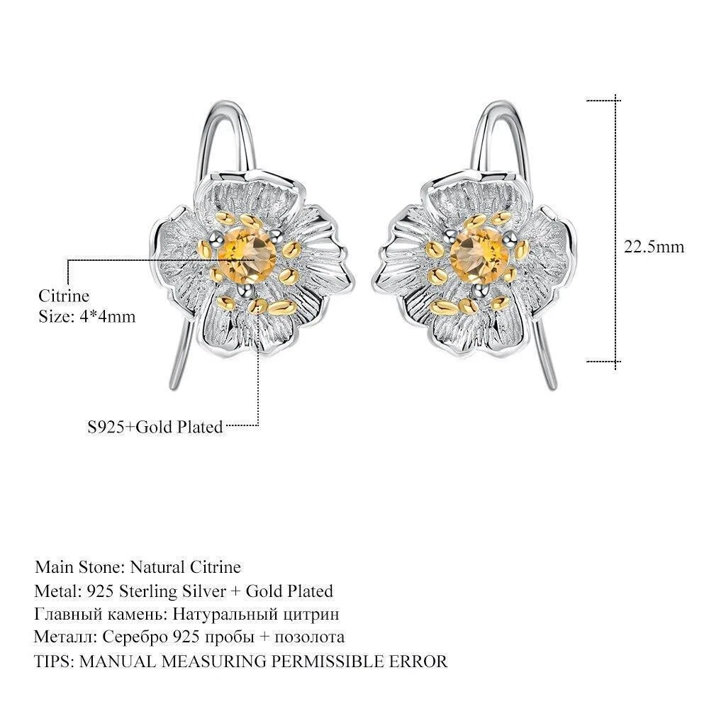 Ring Total Weight:4.12gMetal:925 Sterling Silver + Gold PlatedEarring Type:Drop EarringsMain Stone Color:YellowMain Stone:CitrineOccasion:Anniversary, Birthday, Christmas, Engagement, Valentine's Day, WeddingShape:FlowerMain Stone Shape:RoundGift For:Girlfriend, Wife, MomBase Metal:Fine Silver, 925 Parts Per 1000Theme:Flowers & PlantsMaterial:GemstoneSilver Weight:4.00gClosure:Long Hook/Ear WireType:EarringsBrand:UnbrandedShape\pattern:PlantItem Weight:4.12gMain Stone Carat:0.56ct TotalMain Stone Creation:NaturalStyle:ClassicHandmade:YesMetal Purity:925 Parts Per 1000Certificate Type:GTCColor:Silver And GoldMain Stone Size:4*4mm