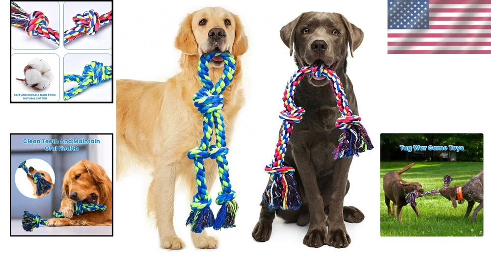 Natural Cotton Heavy Duty Dog Rope Toys - Ideal for Aggressive Chewers 2 Pack ‹ › ‹ › ‹ › ‹ › ‹ › ‹ › ‹ › ‹ › Natural Cotton Heavy Duty Dog Rope Toys - 2 Pack Designed specifically for large dogs and aggressive chewers, this durable set features two robust XL rope toys: one measures 27 inches with 4 knots, and the other 20 inches with 5 knots. These toys are not just playthings; they're crafted for longevity and safety, ensuring your furry friend can chew to their heart's content. Features: Durable and Safe Material: Made from 100% natural, washable cotton ropes that guarantee both safety and durability. Teeth Cleaning: The tasteless natural fibers work as a natural floss; they help clean your dog's teeth and combat dental plaque and gum disease. Tug of War Interactive Dog Toys: Perfect for engaging tug of war games with your pet, enhancing the bond between you and your furry companion. Ideal Dog Gift: A thoughtful gift for your dog's birthday, adoption anniversary, or any celebration; these toys bring fun and health benefits together. Benefits: Designed for aggressive chewers, ensuring no more quick wear and tear. Promotes dental hygiene through safe chewing. Encourages interactive play and bonding with your pet through games like tug of war. Perfectly sized for large breeds, catering to their strength and playful nature. A great way to reduce boredom and anxiety in dogs. Why choose our Heavy Duty Dog Rope Toys? Choosing the right toy for your large and aggressive chewer can be a challenge, but our Natural Cotton Heavy Duty Dog Rope Toys provide the perfect combination of durability, safety, and dental health benefits. Give your furry friend the ultimate gift of play with these long-lasting, engaging toys - ensuring hours of fun, interaction, and cleanliness! Order your 2 pack today and watch your dog thrive! Shipping Free & Fast Shipping - We offer free shipping to most of the USA with a normal delivery time of 3-7 days. However, due to the current situation, additional delivery time (up to 3 weeks) may be required for some items. Alternative Carriers - We may use alternative carriers (e.g. USPS, FedEx, UPS, etc.) to ensure your package arrives safely and on time. Due to the use of multiple carriers, we are unable to provide a tracking number automatically. Handling Time - Orders are processed and shipped within 1-2 business days of receiving cleared payment. Shipping Restrictions - Shipping to Alaska, Hawaii, Puerto Rico, Guam, and other US territories may incur shipping charges or delivery restrictions. Please contact us before ordering, or your order can be refunded/cancelled. State Restrictions - There may be restrictions based on your state of purchase. For example, certain items may not be shipped to California due to state regulations. Contact for Tracking Updates - If you require tracking updates or have any concerns about the delivery of your order, please feel free to contact us, and we will be happy to assist you. Return 30-Day Hassle-Free Returns - We want you to be completely satisfied with your purchase. If you are not, you can return the item within 30 days of receiving it for a full refund or exchange. Easy Return Process - To start a return, simply contact us and we will provide you with a prepaid return shipping label and detailed instructions. Restocking Fee - There are no restocking fees for returns. However, the buyer is responsible for return shipping costs if the return is not due to a seller's error. Refund Processing Time - Refunds will be processed within 5 business days of receiving the returned item in its original condition. Payment We accept all major credit cards, PayPal, and Apple Pay for your convenience. Your payment information is secure and encrypted to ensure a safe and seamless transaction. Please complete your payment within 3 days of purchase to avoid any delays in shipping. Feedback Your feedback is extremely important to us. We strive to provide the best products and customer service possible. If you are satisfied with your purchase, please take a moment to leave us a positive review. If you have any concerns or issues with your order, please contact us before leaving negative feedback. We are committed to resolving any problems and ensuring your satisfaction. Contact Us If you have any questions or concerns, please feel free to reach out to our customer support team. You can contact us through the eBay messaging system. We are available Monday to Friday, 9:00 am to 5:00 pm EST, and we will do our best to respond to your inquiry within 24 hours. Buy it now and enjoy a pleasant shopping experience! UPC: Not Set Model: Dog Chew Toys MPN: Dog_Chew_Toys Unit Quantity: 3.53 Dog Size: M,L Features: Heavy Duty,Teething Aid,Durable,Washable,Tug of War,Teeth Cleaning Brand: Unbranded Type: Rope/Tug Toy Material: Cotton Country/Region of Manufacture: Not Set Unit Type: oz
