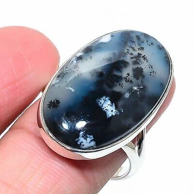 Natural Dendrite Opal Gemstone 925 Solid Sterling Silver Jewelry Ring S.9.5
