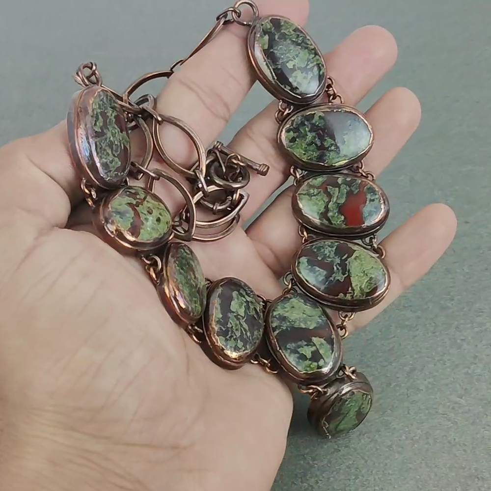 Note: Natural gemstones can vary slightly in design and color due to their unique formation. Welcome to KrishnaJewels123 Explore Our Handmade Jewelry Collection Product Details: SKU: JZN-56 Gemstone: Dragon Bloodstone Stone Shape: Oval Length: 18 Inches Width: Inches Sophisticated charm and enduring quality have long been hallmarks of our fashion collection. Valued for its elegance and versatility, our designs are staples in modern fashion, offering a perfect balance of beauty and durability. Our fashion jewelry combines timeless appeal with contemporary craftsmanship. Known for its hypoallergenic qualities and resistance to wear, each piece enhances the natural brilliance of gemstones, creating a stunning, refined look. Ideal For: Mother’s Day Father’s Day Promises Valentine’s Day Halloween Celebrations Christmas Gifts New Year Festivities Gifts for Mom Gifts for Her Need more details or personalized advice? Don’t hesitate to reach out! We’re here to assist you promptly. Each piece at KrishnaJewels123 is handcrafted with care and passion. As experts in creating exquisite fashion jewelry, we take pride in our meticulous craftsmanship. Our collection features a diverse range of designs, each enhanced by genuine gemstones and created by our skilled artisans. Thank you for visiting KrishnaJewels123. We hope you find joy in exploring our collection and enjoy your shopping experience with us!