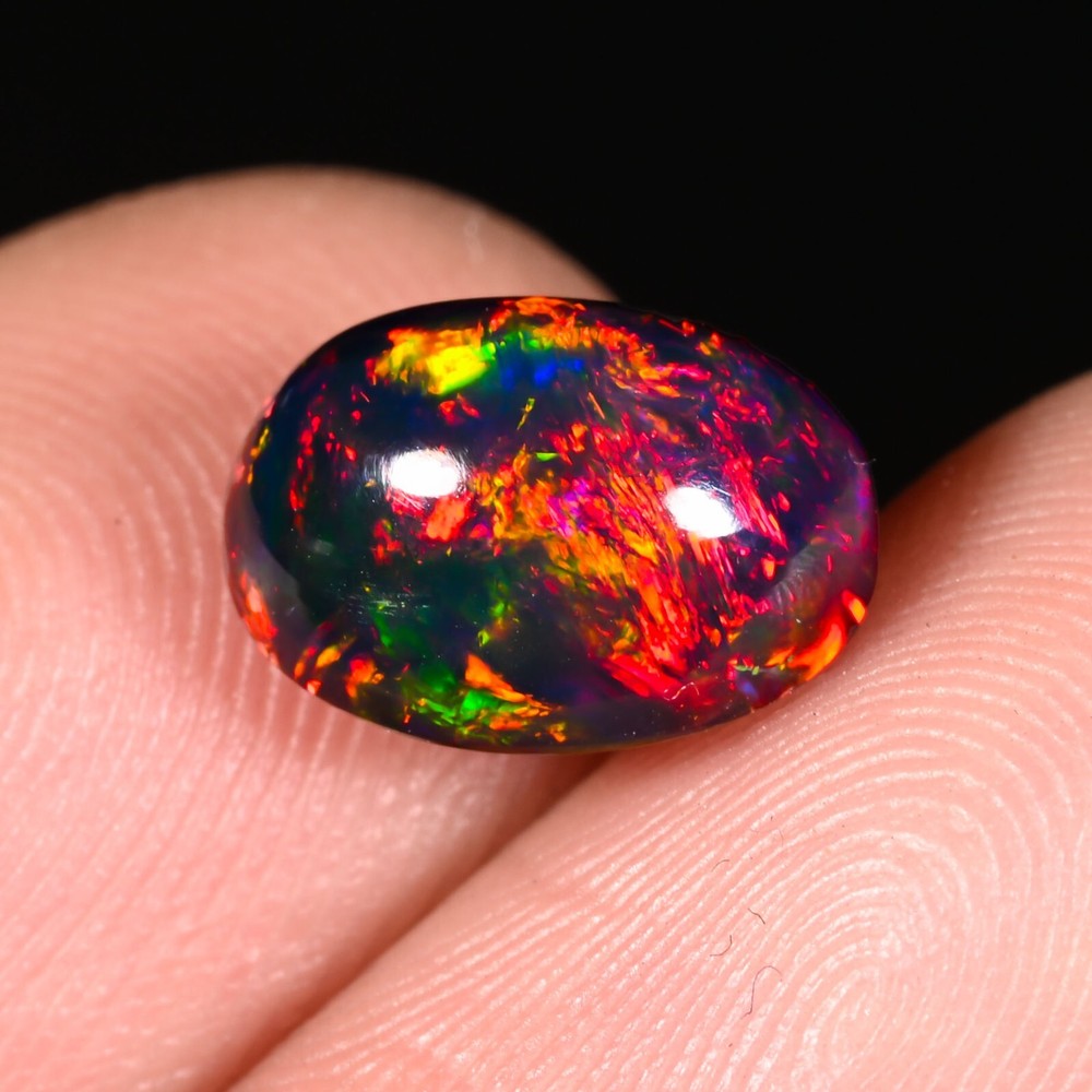 Absolutely stunning! The rich black background makes the fiery opal colors pop beautifully. Perfect size for elegant jewelry, and the natural finish gives it a unique, high-end look. Love how it catches the light—definitely a showstopper!