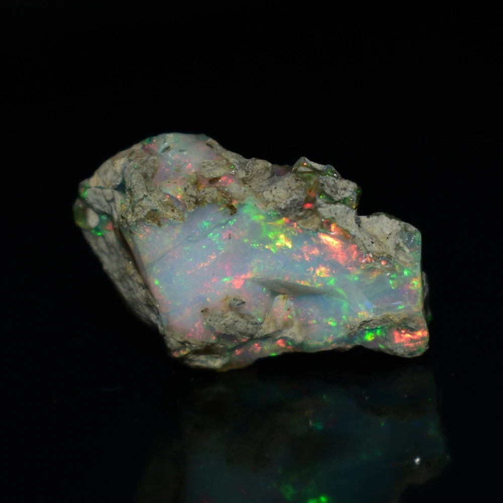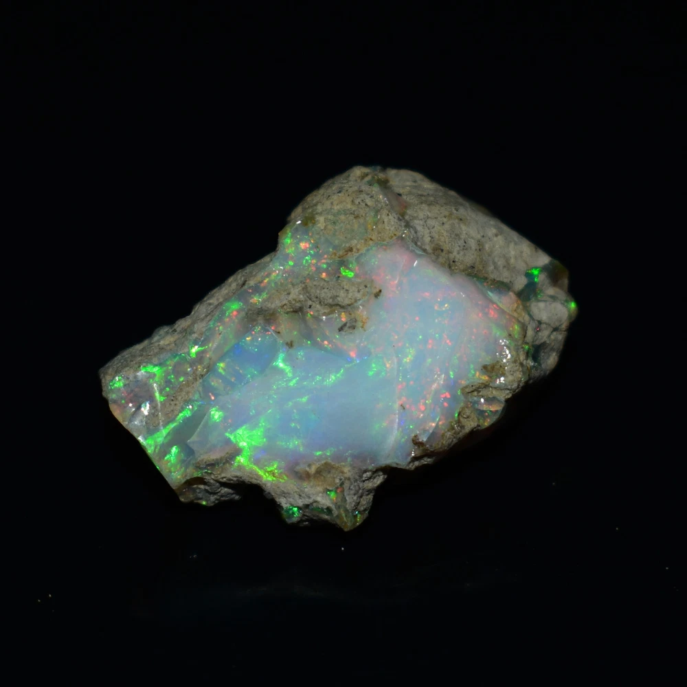 Mountain Gems USA Genuine Gemstones, Guaranteed Authenticity Discover the Beauty of Ethiopian Opal Rough Jewelry Grade Experience the raw, unpolished beauty of Ethiopian opal, a gemstone renowned for its vibrant colors and unique play of light. This rough opal specimen offers a direct connection to the Earth's natural wonders. Key Features: * Type: Ethiopia Opal Jewelry Grade Rough * Weight: 19.65 Carats * Size: 26X17 MM * Origin: Ethiopia, a renowned source of high-quality opal * Condition: Rough, unpolished specimen * Color: Multi Color with Fire Flashes About Ethiopian Opal: Ethiopian opal is prized for its vibrant colors, including blues, greens, yellows, oranges, and reds. It often exhibits a stunning play of light known as "opalescence." This phenomenon is caused by the diffraction of light within the stone's microscopic silica spheres. Note: * The colors and patterns in this specimen may vary slightly due to the natural variation of opal. * This is a rough specimen and may require further cutting or polishing to reveal its full potential. Shipping: * Free International Standard Shipping: Enjoy free standard shipping across the Globe. * International Shipping: Free Returns: * Free 30-Day Returns: Return the item within 30 days for a full refund, no questions asked. Payment: * Accepted Payment Methods: PayPal, credit cards, debit cards, Venmo, etc Additional Information: * Certificate of Authenticity: 20$ Extra for Cetificates * Custom Orders: We offer custom cutting or polishing services, drilling and whatever you want. By purchasing this Ethiopian opal specimen rough, you're acquiring a unique piece of nature's artistry.