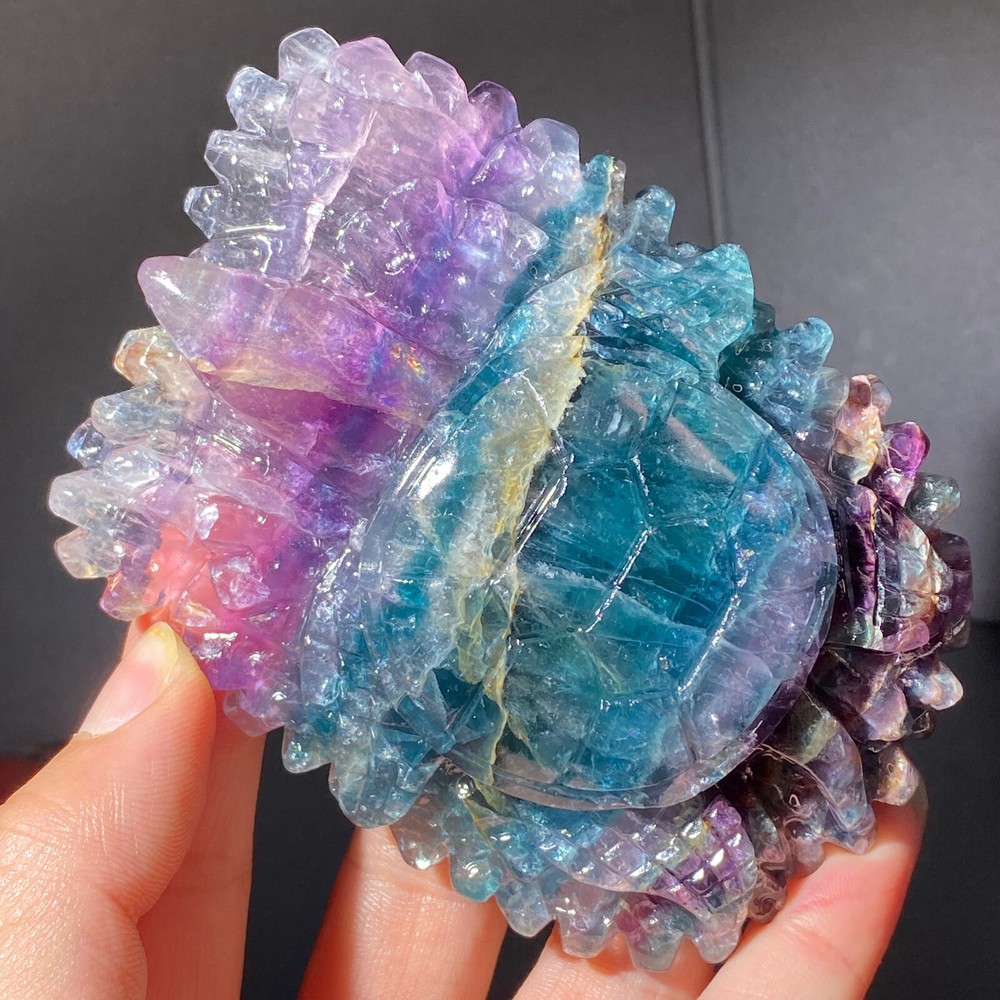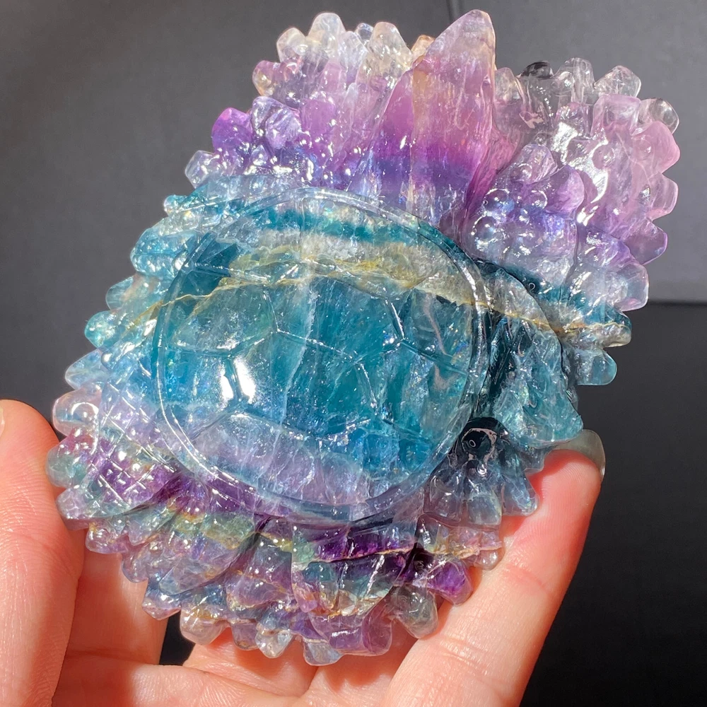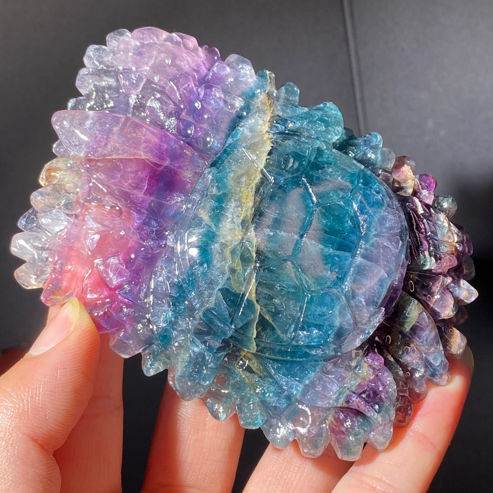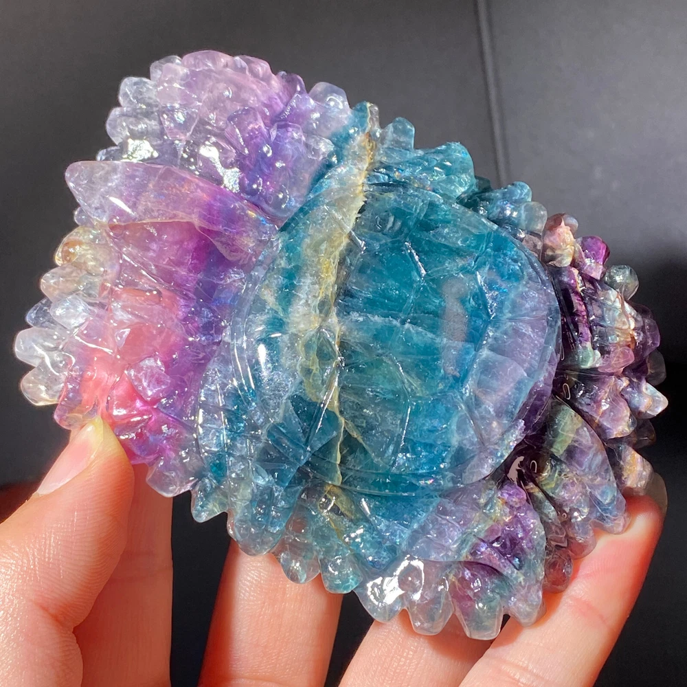 301g Natural Fluorite Ball Colorful Quartz Crystal Gemstone Healing Stone with Stand