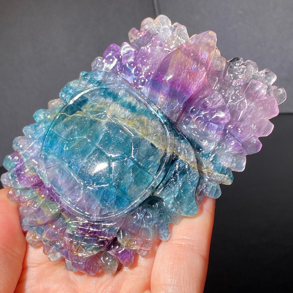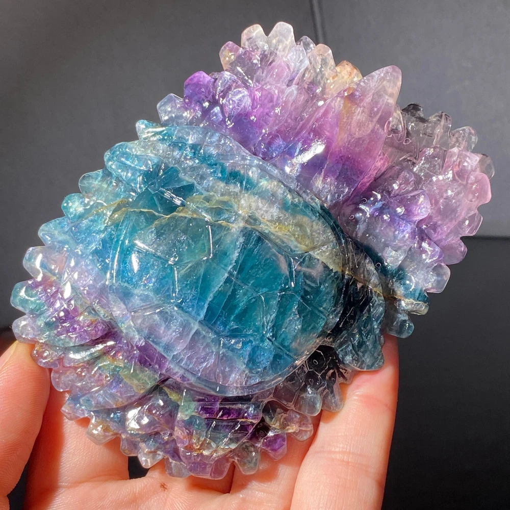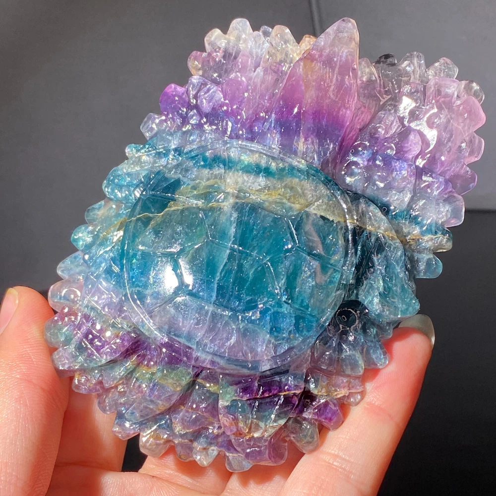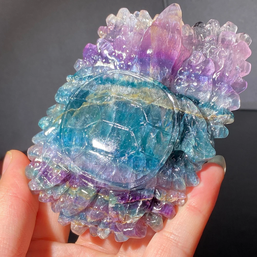301g Natural Fluorite Ball Colorful Quartz Crystal Gemstone Healing Stone with Stand