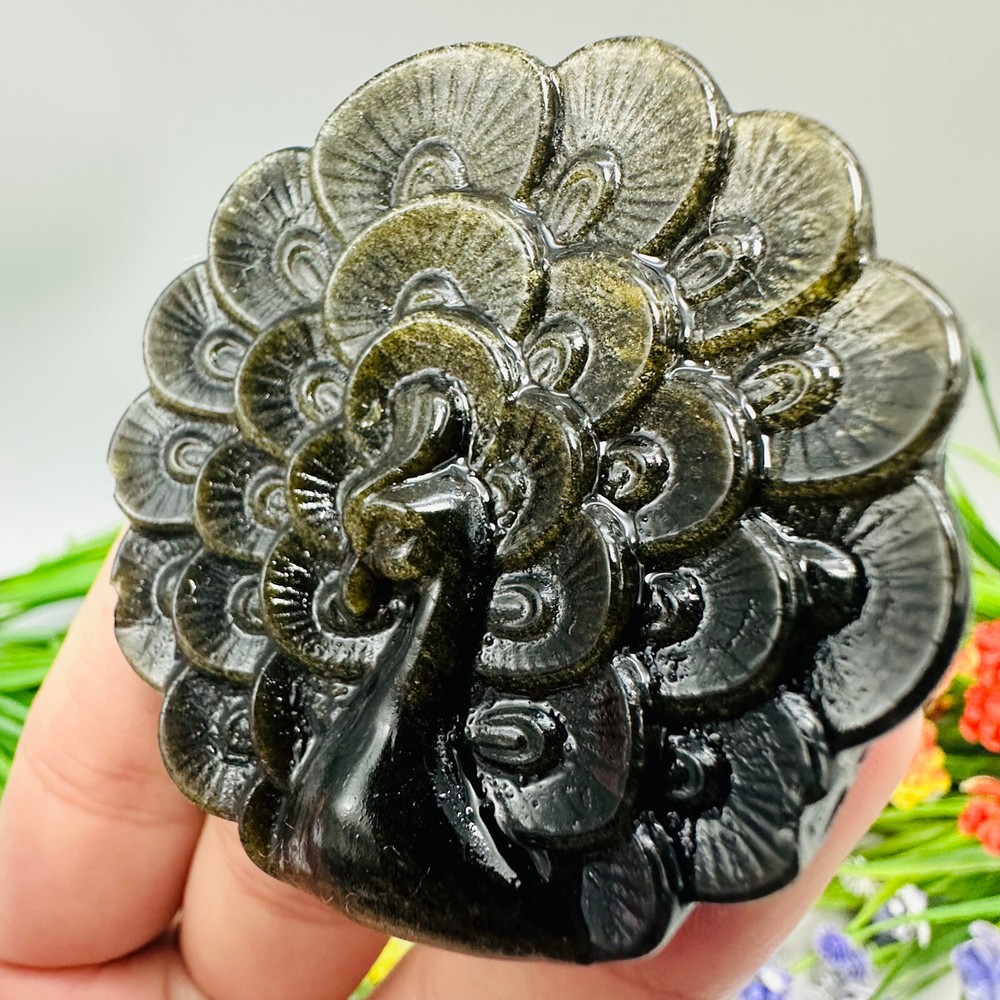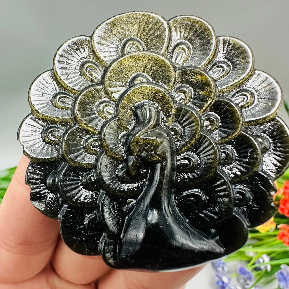 This stunning gold obsidian peacock quartz skull is a true masterpiece! The intricate details and natural shimmer make it a captivating centerpiece. Perfect for Reiki healing or as a unique decor piece, the craftsmanship is exceptional. It arrived quickly, well-packaged, and looks even better in person. A must-have for crystal collectors!