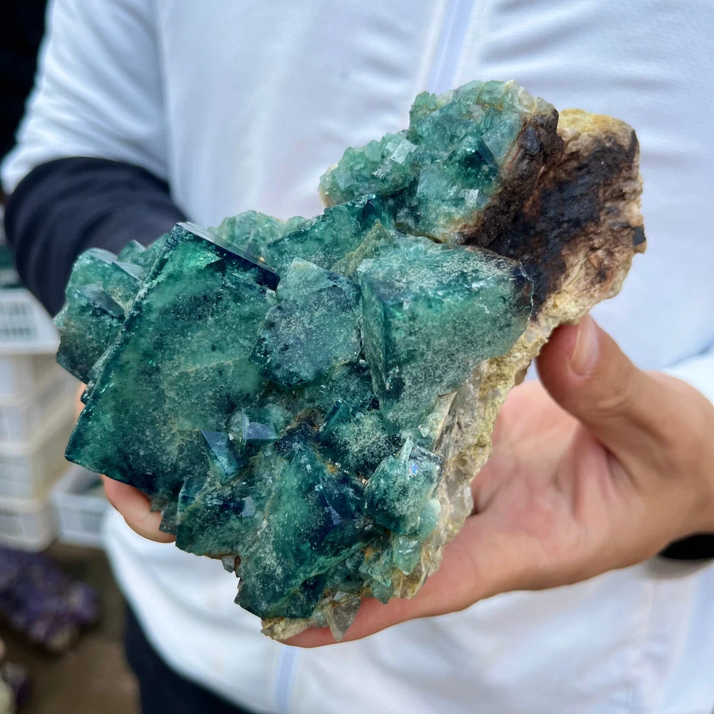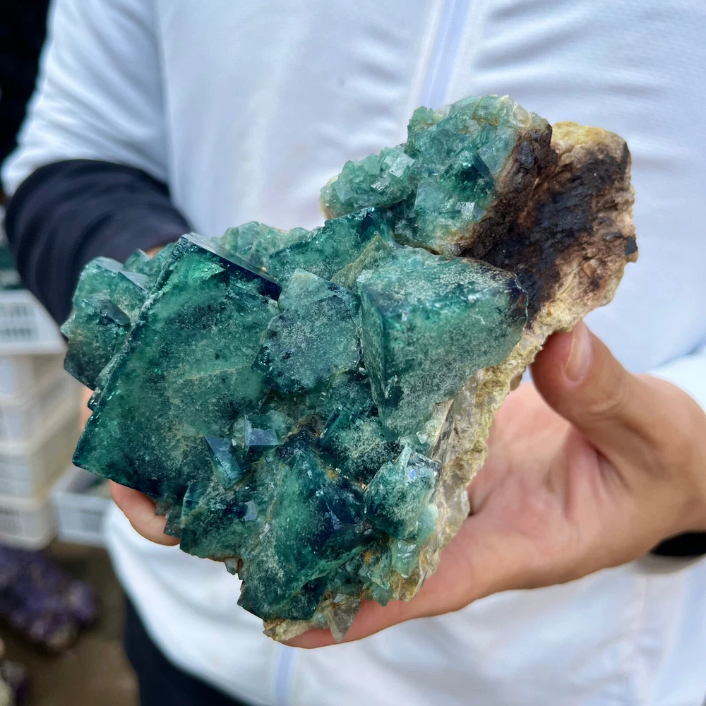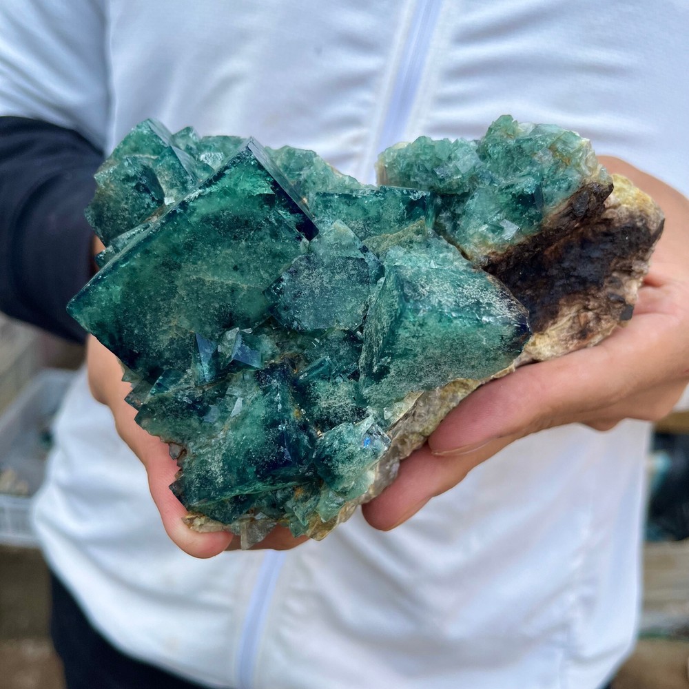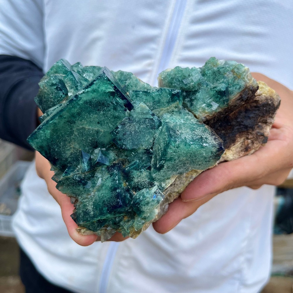 1. Amazing blue green hues in the fluorite. Item got here super quickly and it was wrapped completely in bubble wrap and tape. It looks exactly like the picture. It’s a solid chonk of a rock with interesting white flecks of crystal on the bottom. A+ transaction!!!