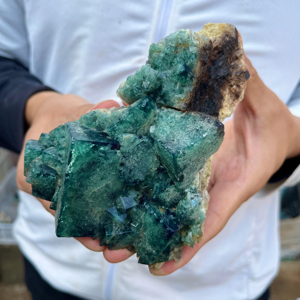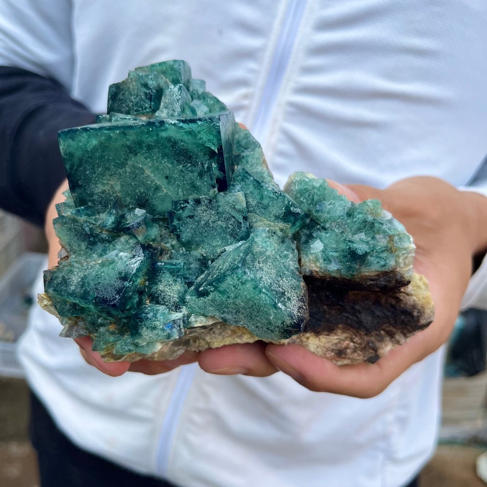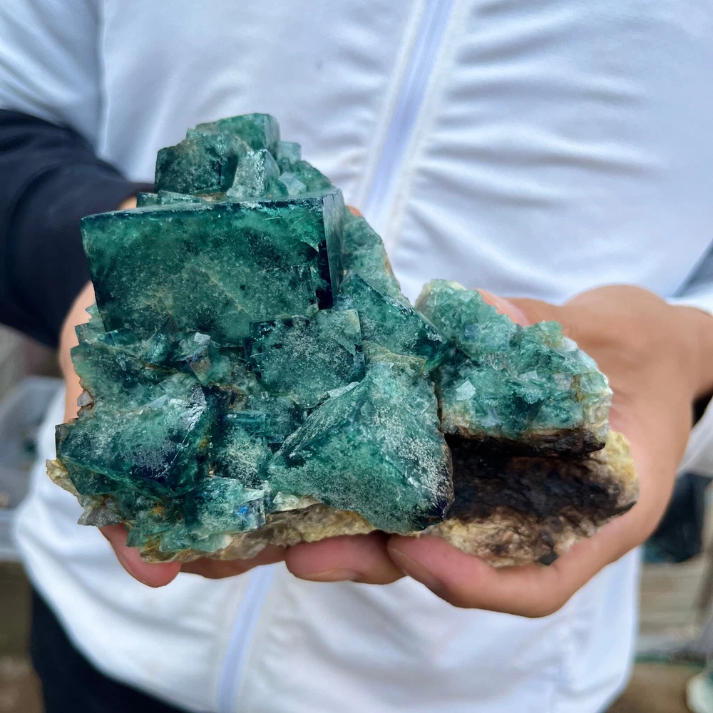 Natural Green Fluorite Quartz Crystal Cluster Specimen 1.6LB