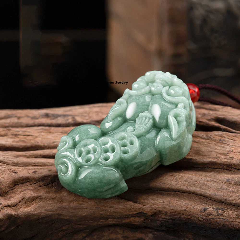 This stunning Grade A jade pendant is absolutely gorgeous! The dragon Pixiu design is intricately carved with beautiful details, and the natural green jadeite has a rich, vibrant color. It feels smooth and high-quality in hand, perfect for gifting or wearing yourself. The size is just right—not too big or small. I love that it comes with authenticity verification, giving me confidence in my purchase. The craftsmanship is impressive, and it looks even better in person than in photos. Definitely a lucky charm worth having!