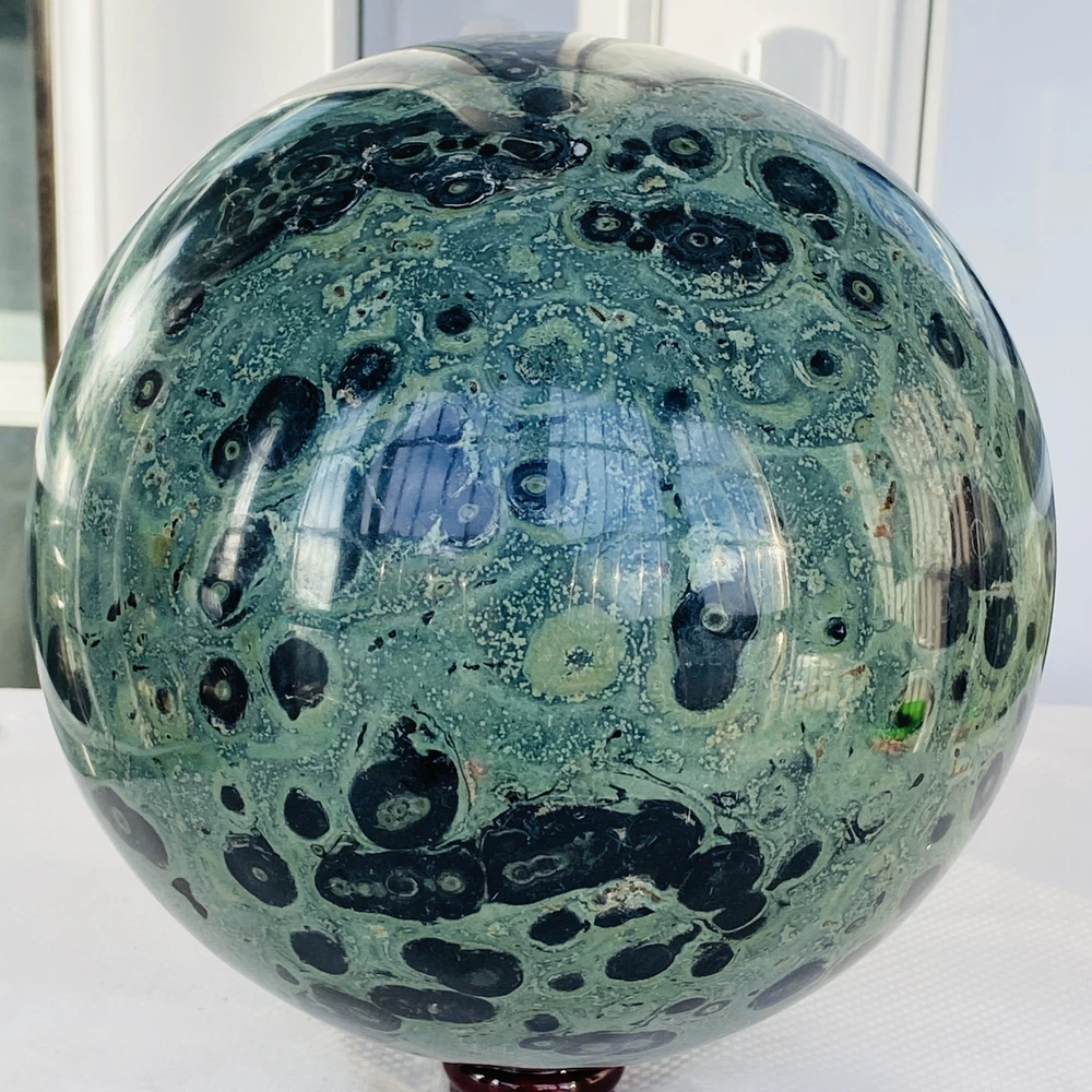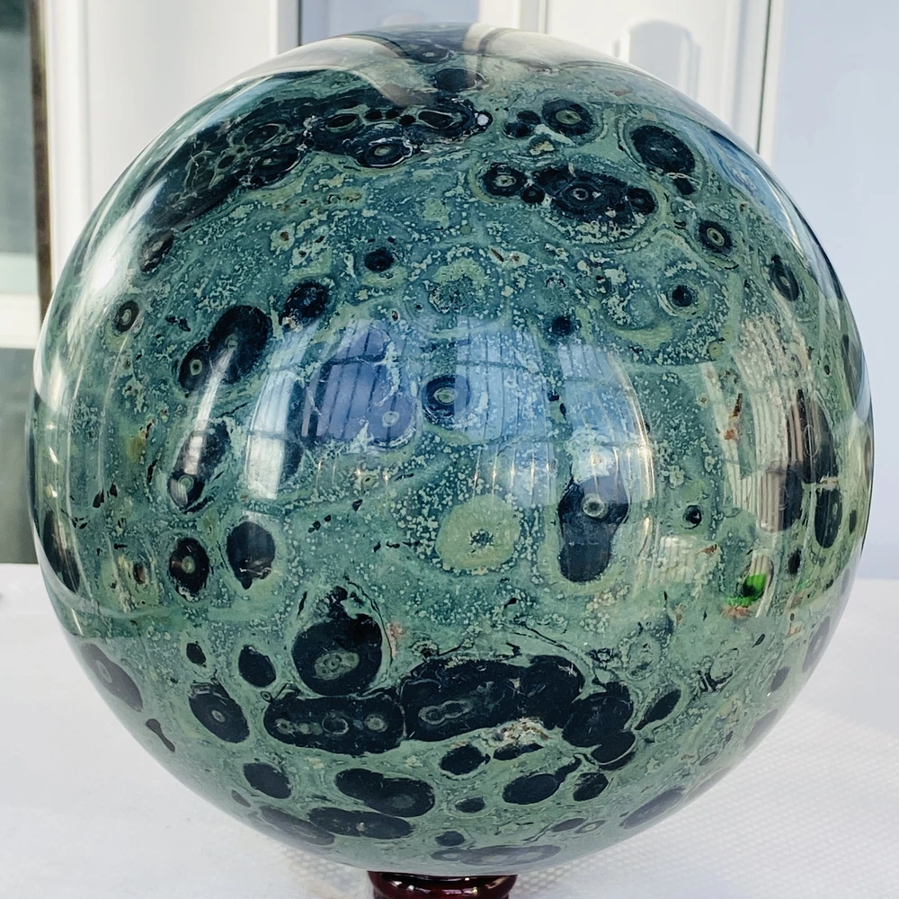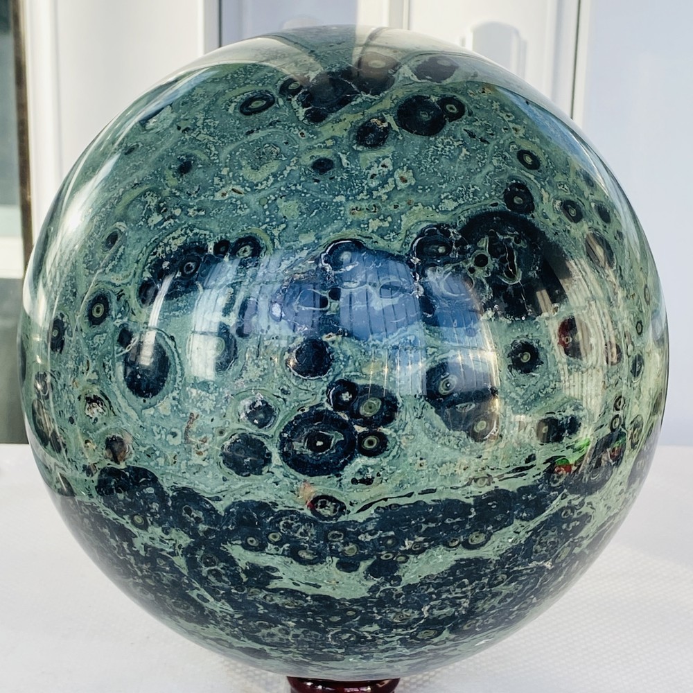 Wow, this Kambaba Jasper sphere is absolutely stunning! The deep green swirls are mesmerizing, and it has such a beautiful, solid energy. Holding this hefty, natural piece feels incredible. It's a true work of art from the earth, and the unique patterns are even more captivating in person. I'm in love with it!