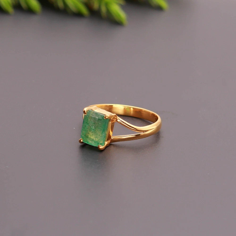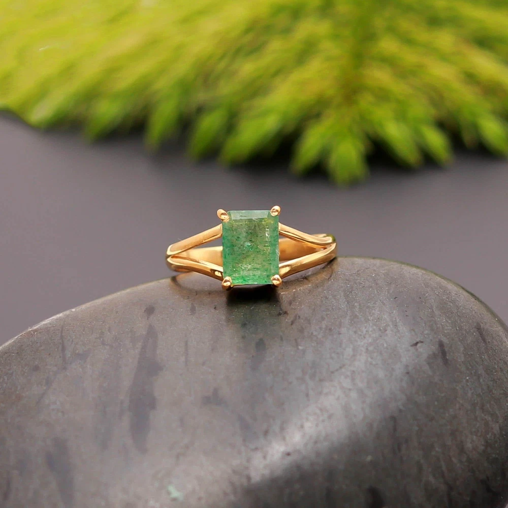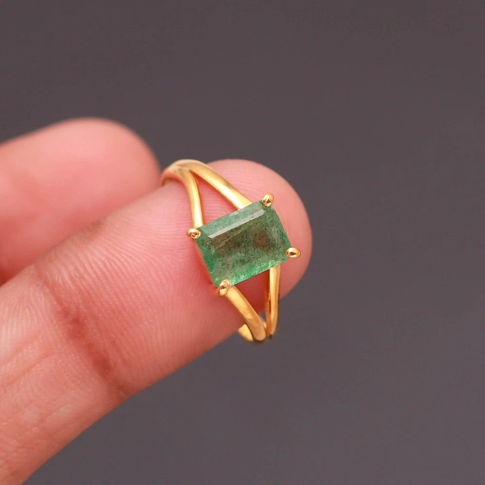 Natural Green Onyx Coffin Ring in 925 Sterling Silver Gold Plated for Lovers
