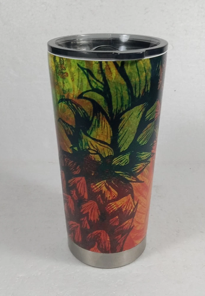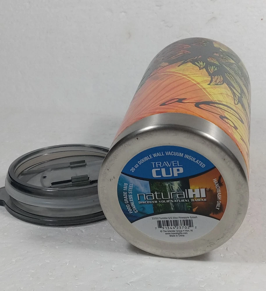 This Natural Hi Travel Cup is the perfect companion for your on-the-go beverages. With a capacity of 20.oz, it is ideal for both hot and cold drinks and will keep your drink at the perfect temperature for hours thanks to its double-walled stainless steel construction and vacuum insulation. The cup features a slide lock lid type, making it easy to use and preventing spills. The pineapple splash pattern adds a touch of fun to your beach and nautical themed outfits. Made in China, this insulated tumbler is perfect for teens and adults alike. Get your hands on this Hi Travel Cup and enjoy your favorite beverage wherever you go!