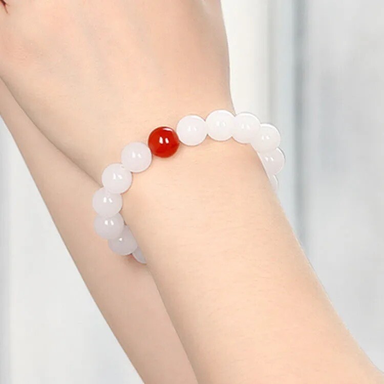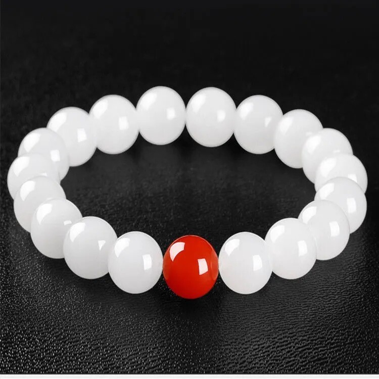 This bracelet is absolutely stunning! The 8mm jade and agate beads have a rich, natural look with a smooth, polished finish. It fits comfortably on wrists between 5-6.5 inches and feels lightweight yet durable. The mix of red agate and white jade creates a beautiful contrast—perfect for adding elegance to any outfit. Though each piece is unique due to natural variations, the craftsmanship is top-notch. Great quality for the price, and it makes a lovely gift!