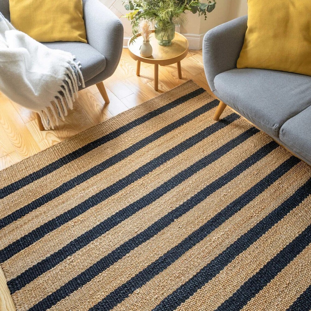 Natural Jute Black Stripe Rug Large Sisal Mat for Living Dining or Bedroom