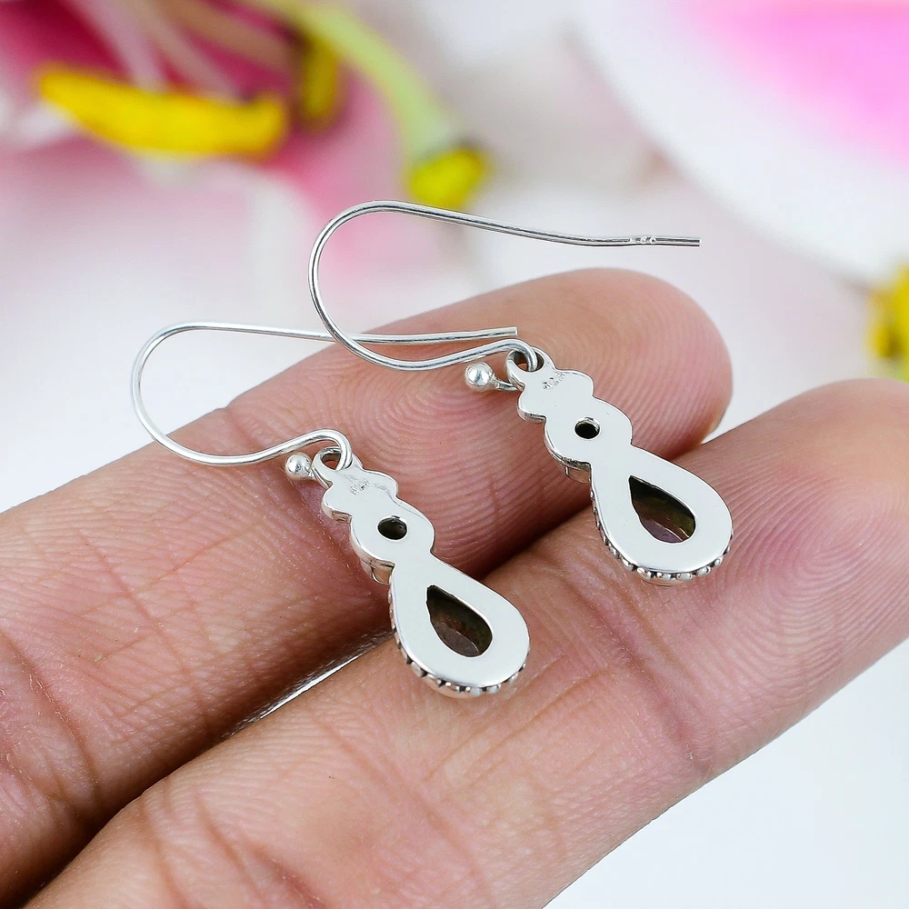 Natural Labradorite,Peridot Gemstone 925 Solid Sterling Silver Earring 1.5"