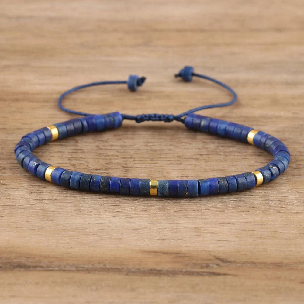 Natural Lapis Lazuli Beads Healing Reiki Crystal Minimalist Dainty Bracelet H9