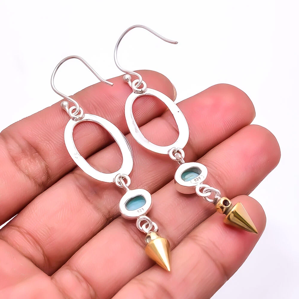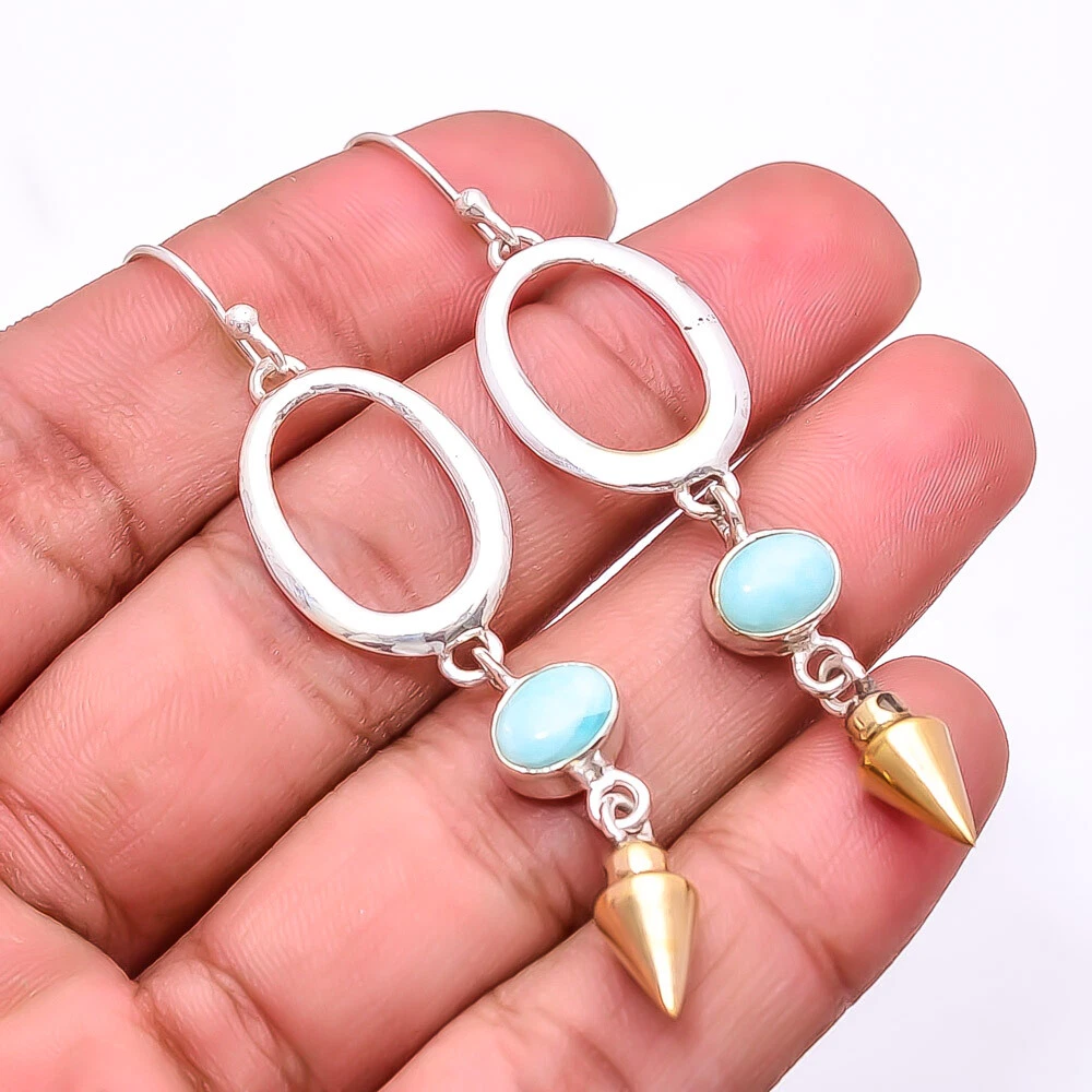 Theme Beauty Main Stone Depth As Seen in Picture Main Stone Length As Seen in Picture Main Stone Width As Seen in Picture Seller Warranty Yes Shape As Seen in Picture SKU E_9283_225_20 Main Stone Cut Type Cabochon Main Stone Size 8X6 Mm Antique Yes Handmade Yes Type Earring Style Drop/Dangle Metal Sterling Silver Metal Purity 925 Parts Per 1000 Base Metal Sterling Silver Total Carat Weight 32.5 Main Stone Larimar Main Stone Creation Natural Main Stone Shape Oval Main Stone Color Blue Main Stone Treatment Natural Material Gemstone, Stone Number of Gemstones 2 Item Length 2.73 Features Engraved, Nickel-Free, Handcrafted Ear Area Lobe Brand Unbranded Country/Region of Manufacture India Country of Origin United States Color As Seen in Picture Diamond Clarity Grade Not Applicable Number of Diamonds As Seen in Picture Item Diameter As Seen in Picture Gemstone Clarity Grade Opaque Diamond Color Grade Not Applicable Customized No Colored Diamond Intensity Not Applicable Certification 100% Genuine Guaranteed Setting Style Bezel Occasion Christmas, Birthday, Anniversary, Engagement, Wedding, Valen Shipping & Handling - Charge - 1st item-5.90 And Additional item-1.90 Handling Time - 1 Days . Delivery Time - 2 TO 3 DAYS. Shipping Service - USPS First Class Package 2 -3 Days. Returns - 1.We offer a 100% Money Back Guarantee minus shipping for 30 days after receiving the Item / item's. 2..The item must not be altered or damaged in any way shape or form. 3.Upon receiving these items your payment will be refunded. 4.Email us for return instructions before sending merchandise back. 5.Please allow up to 1 business day for all returns to receive credit. 6.Sizing does not affect the return policy. Payment - We accept PayPal for Payment ,should made with in 14 days once buying or winning done , in case of late information expected .