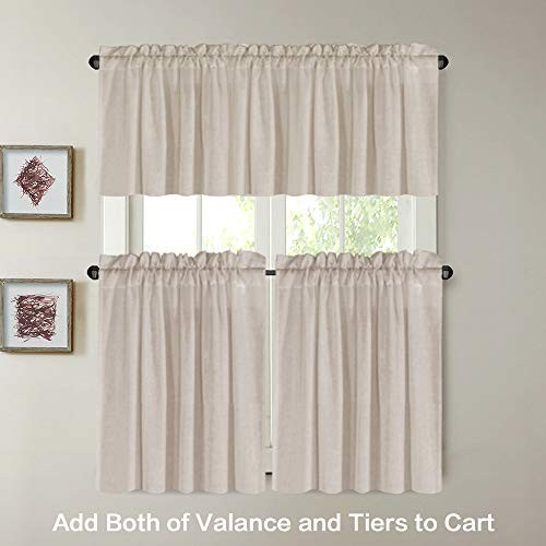 Natural Linen Kitchen Curtains 36 Inch Length Textured Flax Curtain Tiers for