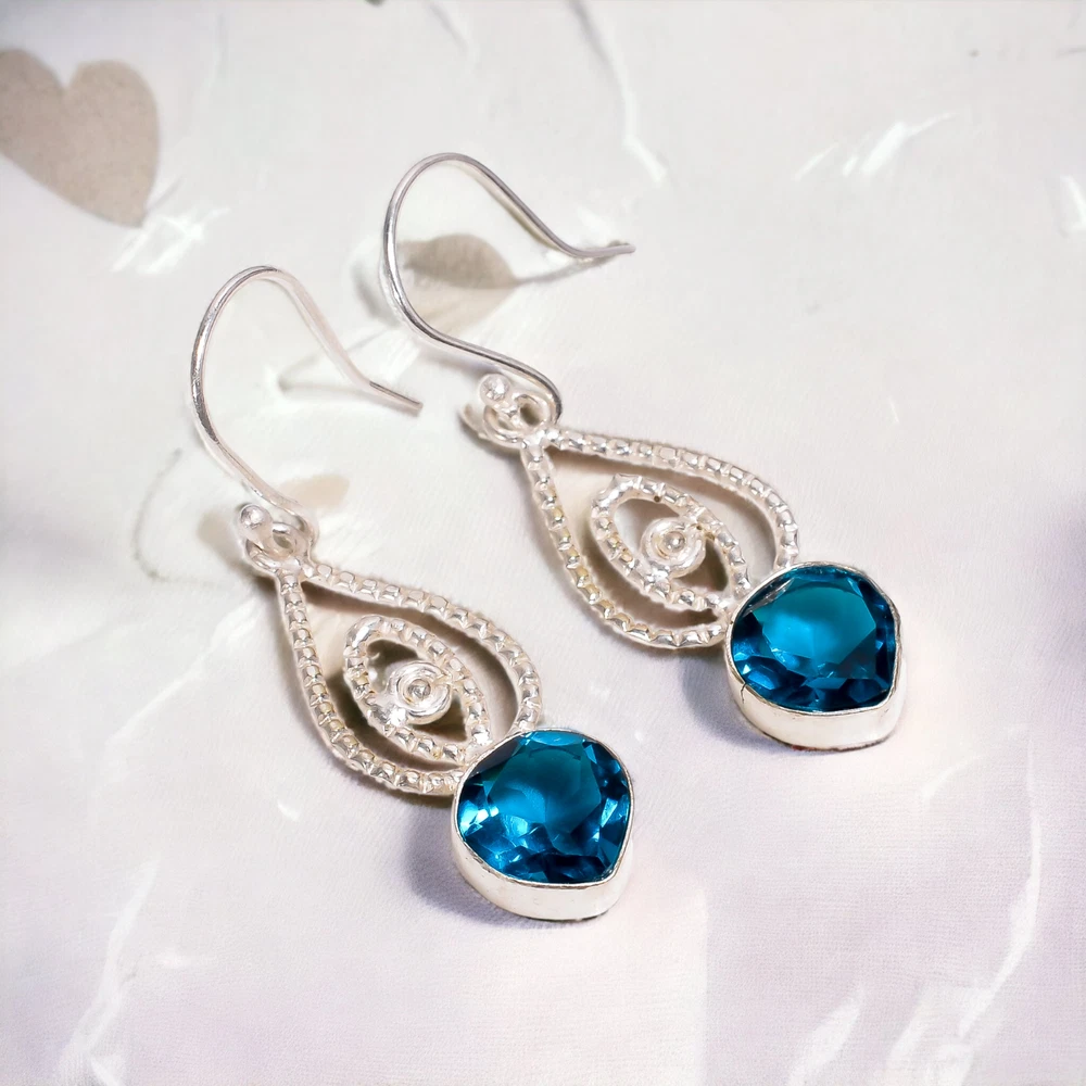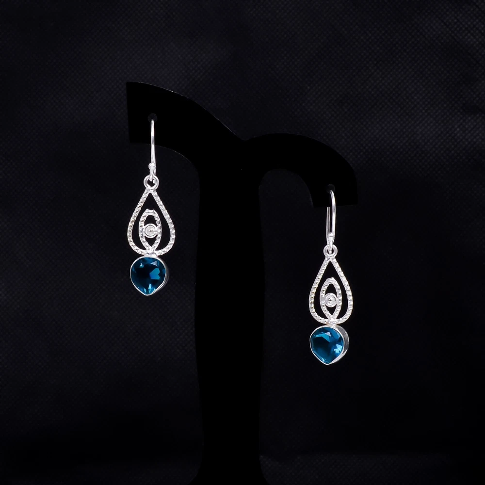 Welcome to Jaipur Silver Gallery Natural London Blue Topaz Gemstone Drop/Dangle Earrings 925 Sterling Silver Handmade Earrings, Sterling Silver Earrings, London Blue Topaz Earrings, Handcrafted Earrings SKU : - GSE-121 Gemstone : - London Blue Topaz Stone Shape : - Pear Metal : - Sterling Silver Metal Purity : - 925 Earring Length : 2 Inches Earring Width : Inches _______________________________________________________________________________________ Amazing Properties of Silver ****************************** Tough and Long-lasting: Silver is incredibly strong, built to withstand daily wear and tear as well as tough environmental conditions. Easy to Shape and Design: Silver is like clay for skilled craftsmen, allowing them to create beautiful and intricate designs effortlessly. Great at Conducting Energy: When it comes to heat and electricity, silver is the go-to. It can quickly and efficiently transfer energy, making it ideal for various applications. Keeps Things Clean and Safe: Silver has a natural ability to keep harmful bacteria at bay, making it a reliable choice for promoting cleanliness and well-being. 3 Underrated Benefits Of Silver ****************************** Gorgeous Charm: Silver jewelry shines brightly, enhancing any outfit and fitting everyone's style with ease. Gentle on Skin: Silver is kind to your skin, reducing the chance of allergies and making it a favorite choice for accessories. Healing Vibes: Some believe silver jewelry has a soothing touch, possibly aiding in easing issues like arthritis, anxiety, and the blues. _______________________________________________________________________________________ For Mother's Day Gift For Father's Day Gift For Promise For Valentine' Day For Halloween Party For Christmas Day Gift For New Year Party For Mom For Her _______________________________________________________________________________________ If you need more help or want design tips, just give us a shout! We're lightning-fast in getting back to you. Every single thing we create is made by hand in our special workshop, and we put a whole lot of love and care into every piece. Thank you for stopping by! We're confident you'll have an amazing time shopping with us. We're here to make sure every moment you spend with us is filled with delight and satisfaction. Happy shopping!