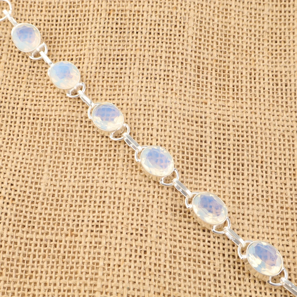 Welcome To Our Shop Gempires ------------------------------------------- Beautifully adorned with Milky Opal and handmade vintage design, this Bracelet will definitely grab attention. Pair it with any of your regular or special attire and let everyone appraise your sense of style. Natural Milky Opal Valentines Birthday Chain Bezel Wife Bracelet Sterling Silver Check My Other Bracelet Listings : Click Here SKU:- RB-10-20 Metal:- Sterling Silver Metal Purity:- 925 Gemstone:- Milky Opal Gemstone Color:- White Gemstone Shape :- Oval Gemstone Creation :- Natural Stone Setting :- Bezel Bracelet Length:- 8 Inches Bracelet Width:- Inches ___________________________________________________________________ Shipping Handling - Free Standard Shipping all over the world Handling Time - 2 to 5 BUSINESS Days Delivery Time - 7 to 20 Days ( Various on destination ) _________________________________________________________________ Returns - 1.We provide a 100% Money Back Guarantee, excluding shipping costs, within 30 days from the date of item receipt. 2.The item must not be altered or damaged in any way shape or form. 3.Upon receipt of the aforementioned items, your payment will be promptly refunded. 4.Please be so kind as to contact us via email in order to acquire comprehensive return instructions before proceeding with the return of the merchandise. 5.Kindly be advised to allocate a maximum period of 1 business day for the processing of all returns, in order for the appropriate credit to be applied. 6.Sizing does not affect the return policy. _________________________________________________________________ FAQ's - Q.1 ARE THE ITEMS YOU ARE SELLING BRAND NEW? We exclusively offer brand-new products, refraining from the sale of pre-owned jewelry. Our entire jewelry collection is composed of 100% natural, conflict-free pieces. We do not engage in the trade of imitation or lab-grown gemstones and diamonds. Q.2 WHAT ARE YOUR BUSINESS HOURS? we operate 24x7 as we have a dedicated team who works in different shifts to deliver the services to our valuable customers. ________________________________________________________________ Gempires is committed to delivering customers an unparalleled experience through the provision of exquisite handmade jewelry, meticulously crafted to uphold the most exacting standards of quality. Our operations encompass dual roles as both discerning connoisseurs and skilled artisans within the realm of jewelry making. We proudly hold an extensive proficiency in the fine art of enhancing gemstones, allowing us to harmonize them seamlessly with diverse aesthetic inclinations. We are delighted to extend to you the privilege of curating your very own jewelry collection. This collection will be graced by the presence of genuine and splendid natural gemstones, each possessing an innate authenticity and beauty that is truly unparalleled. **** STAY BLESSED ALWAYS*****