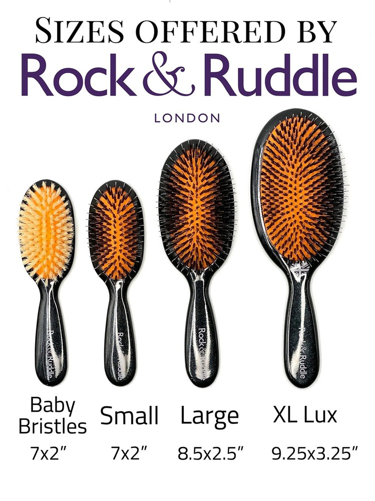 Hairbrushes, made In England hairbrushes all offer the finest natural bristles, which are renowned for caring for your hair due to the structure of the bristle being similar to our own hair. With natural microscopic scales that release and drag the sebum (natural oil) that is produced in the scalp, the oil is distributed along the hair making it shiny and healthy looking. At the same time, brushing your hair with the natural briste brush massages the scalp and stimulates blood flow, while it reduces hair frizz. The rubber pads in our hair brushes ensure that brushing your hair feels gentle and does not pull your hair, which could cause damage (breaking and tearing) to the individual hair strands. In addition the rubber pads ensure that the brushing action is not painful which is a feature much appreciated by many of our younger customers, as well as their Mums and Dads! transforms hair brushing from a task into a joy. Easy to clean Our hairbrushes have been designed so that you can take out the rubber bristle pads in order to clean your hairbrush. Simply gently remove old hair from the brush and bristles with your comb (coming soon!). Wash the bristles by dipping them in warm soapy water. Carefully rinse with cold water and towel dry to remove and soak up any excess water. The bristle pad may be removed for thorough cleaning, and then clicked back into the brush back. Avoid submerging the whole brush, as it could trap water behind the bristle pad and not dry out properly. Treat yourself or gift a beautiful hairbrush to a special person. Love your hairbrush! TREAT YOURSELF WITH THE BEST: Care for your hair with luxurious natural boar bristles paired with a nylon tip in each tuft for gentle detangling without split ends, and scalp stimulation to support healthy hair growth. Plus, a flexible and removable rubber pad for easy cleaning. Great for all hair types, including thick, wet or dry hair! GENTLY DETANGLE & NATURALLY CONDITION: With a nylon tip in each bristle bundle and flexible rubber pad, our brushes are ideal for teasing out tangles without split ends or pulling, even in normal to thick hair. Each bristle massages your scalp and easily glides through your hair, exfoliating, hydrating, and conditioning by spreading the natural oils from your scalp throughout your hair making it glossy, supple, and healthy. GREAT FOR ALL HAIR TYPES: With exclusive, unique designs, our natural brushes are lovely to look at and care beautifully for your hair, whether it is long or short, curly or straight, thick or fine. Smoothly glides through wet or dry hair, and perfect for men, women, and kids. EASY TO CLEAN & MADE TO LAST: Our salon-quality hairbrushes have been designed so that you can remove the rubber bristle pads in order to clean your brush. Simply wash the bristles by dipping them in warm soapy water. DESIGNED & MADE IN UK: A premium brush like no other, brushes have ergonomic handles and timeless designs for everyday luxury and pampering.