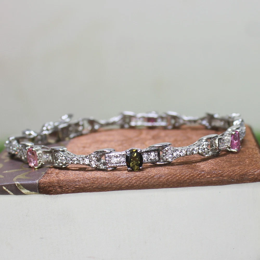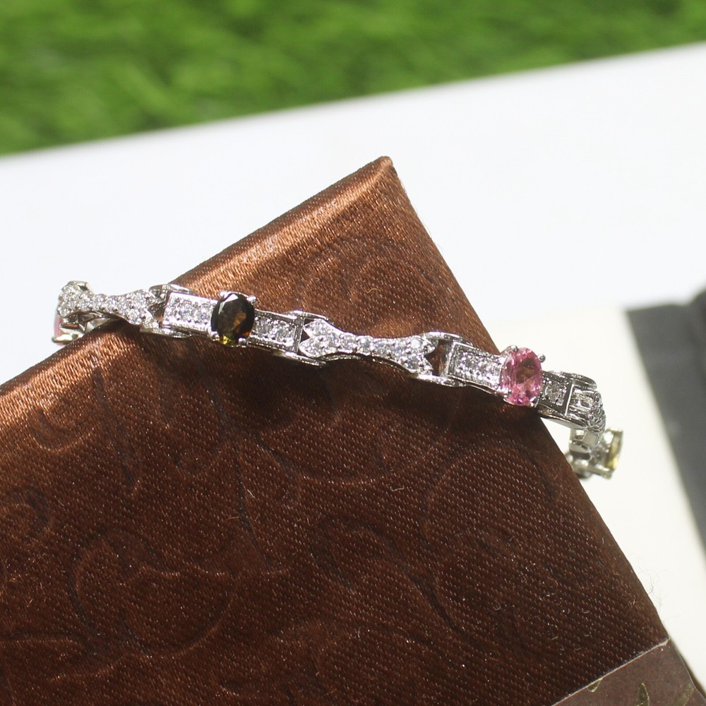 ARBIYA GEMS JEWELRY TYPE: SILVER BRACELET STONE: NATURAL MULTI TOURMALINE SIDE STONES: CUBIC ZIRCONIA BRACELET SIZE: 7.5 INCHES BRACELET WEIGHT: 11.20 GRAMS BRACELET METAL: STERLING SILVER METAL PURITY: 925 TREATMENT: NATURAL COUNTRY OF ORIGIN: INDIA HANDLING TIME: 1-2 DAYS DELIVERY TIME: WE USUALLY TAKES 15-25 DAYS BUT MOSTLY IT DELIVERS TO CUSTOMERS WITHIN 15 DAYS RETURN POLICY: RETURN ACCEPTED ON MANUFACTURING DEFECT WITHIN 30 DAYS. RETURN GIVEN AS MONEY BACK OR REPLACMENT FEEDBACK POLICY: PLEASE LEAVE US A POSITIVE FEEDBACK IF YOUR ITEMS DELIEVERED IN GOOD CONDITION