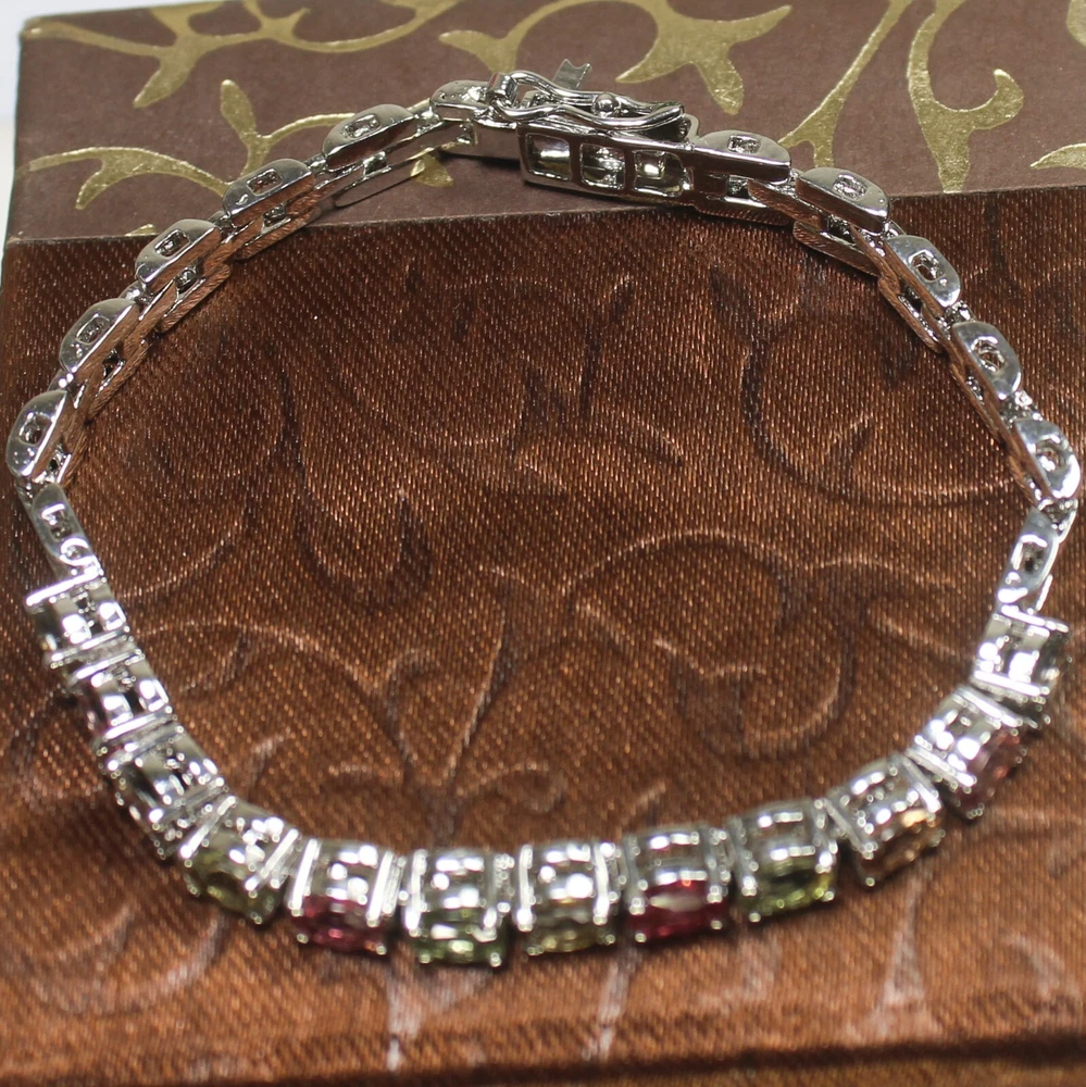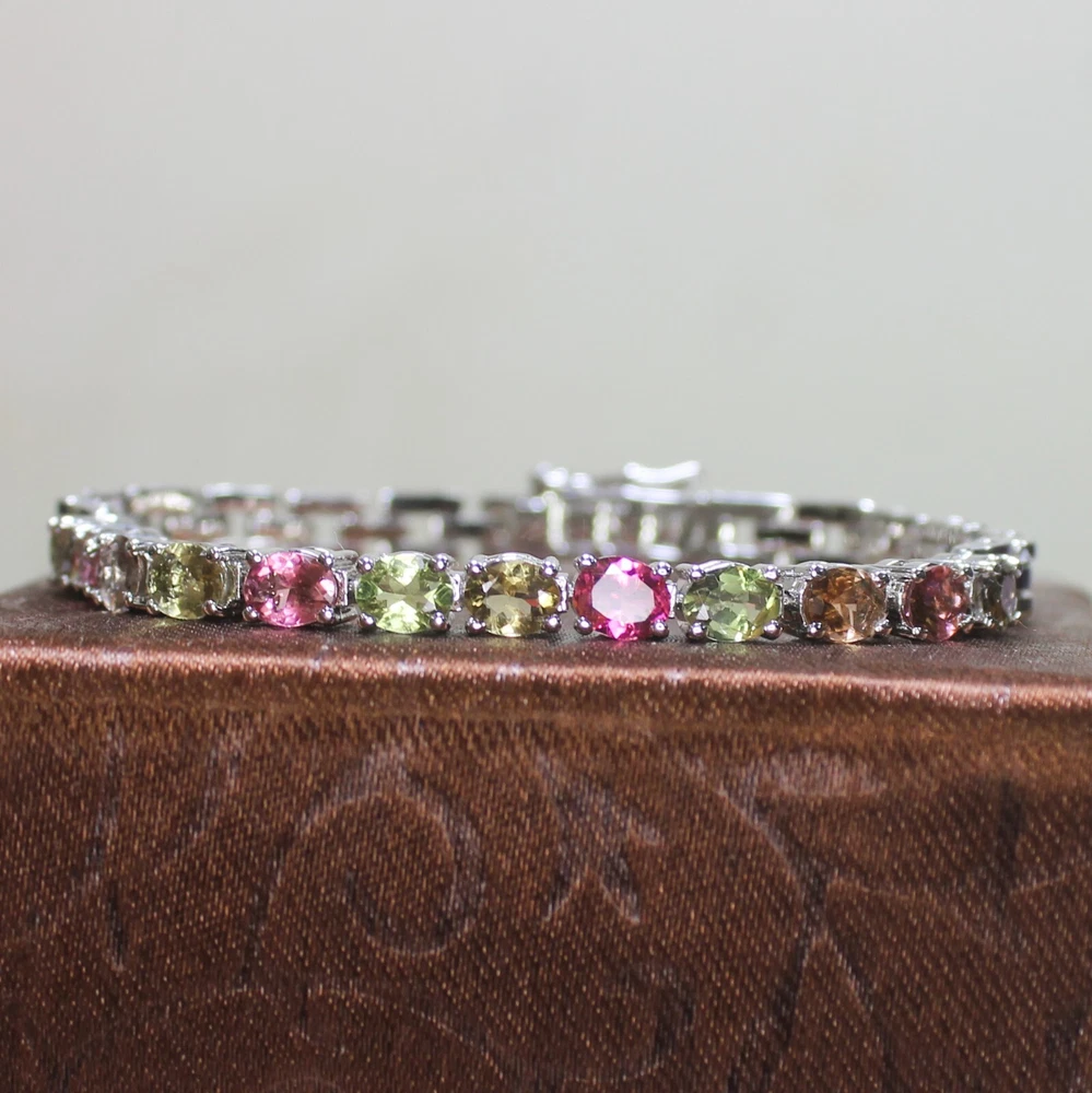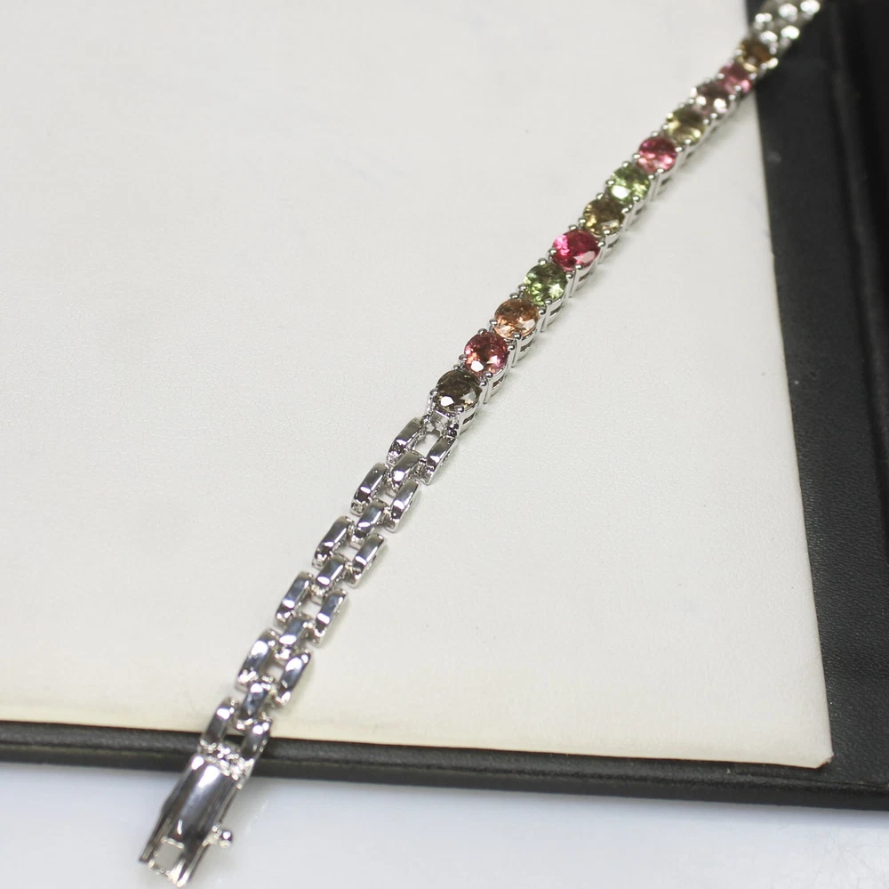ARBIYA GEMS JEWELRY TYPE: SILVER BRACELET STONE: NATURAL MULTI TOURMALINE SIDE STONES: NO BRACELET SIZE: 7.5 INCHES BRACELET WEIGHT: 10.00 GRAMS BRACELET METAL: STERLING SILVER METAL PURITY: 925 TREATMENT: NATURAL COUNTRY OF ORIGIN: INDIA HANDLING TIME: 1-2 DAYS DELIVERY TIME: WE USUALLY TAKES 15-25 DAYS BUT MOSTLY IT DELIVERS TO CUSTOMERS WITHIN 15 DAYS RETURN POLICY: RETURN ACCEPTED ON MANUFACTURING DEFECT WITHIN 30 DAYS. RETURN GIVEN AS MONEY BACK OR REPLACMENT FEEDBACK POLICY: PLEASE LEAVE US A POSITIVE FEEDBACK IF YOUR ITEMS DELIEVERED IN GOOD CONDITION