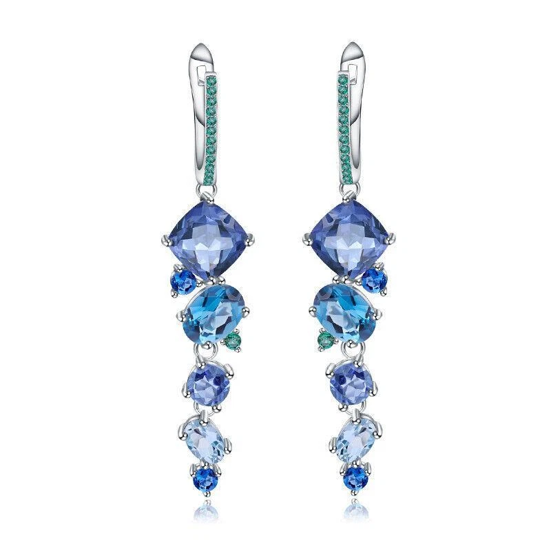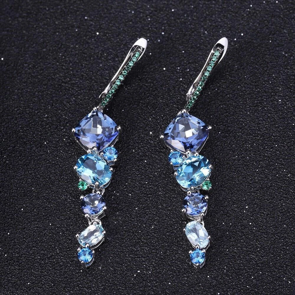 Material:GemstoneStyle:Dangle/DropBase Metal:Fine Silver, 925 Parts Per 1000Main Stone Color:BlueShape:GeometricType:EarringsHandmade:YesMain Stone Size:8*8mm / 4*6mmMain Stone Shape:GeometricMetal:Sterling SilverSecondary Stone:Topaz / Nano Sapphire Blue / Nano Emerald-GreenOccasion:Anniversary, Birthday, Engagement, Valentine's Day, Wedding, PartyBrand:UnbrandedCertification:GTCTheme:BeautyMain Stone:TopazMain Stone Creation:NaturalMetal Purity:925 Parts Per 1000