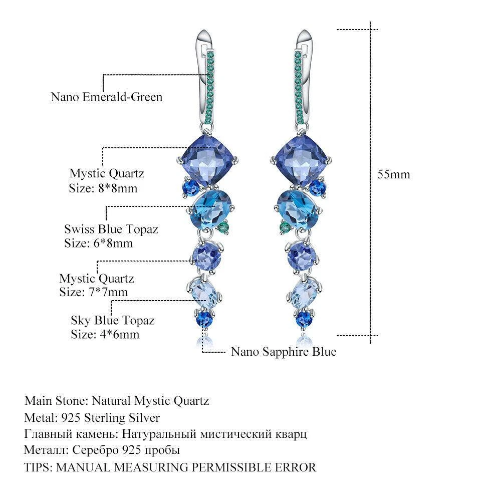 Natural Mystic Quartz Topaz 925 Sterling Silver Cocktail Drop Earrings for Women
