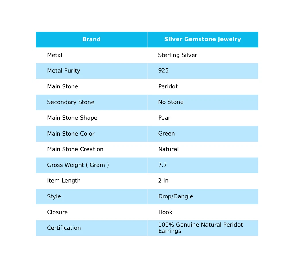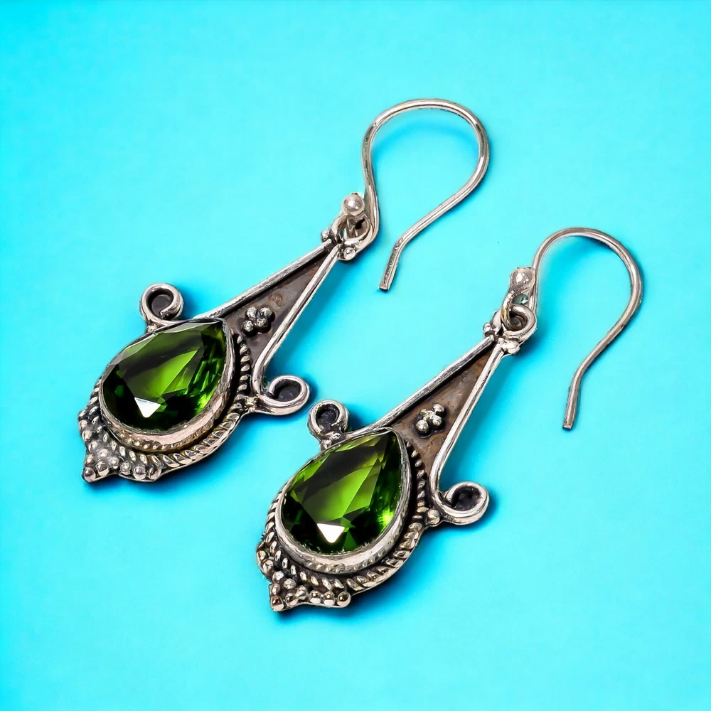 Welcome to Jaipur Silver Gallery Natural Peridot Gemstone Drop/Dangle Birthstone Earrings 925 Silver For Women Handmade Earrings, Sterling Silver Earrings, Peridot Earrings, Handcrafted Earrings SKU : - JSUKE-1807 Gemstone : - Peridot Stone Shape : - Pear Metal : - Sterling Silver Metal Purity : - 925 Earring Length : 2 Inches Earring Width : Inches _______________________________________________________________________________________ Amazing Properties of Silver ****************************** Tough and Long-lasting: Silver is incredibly strong, built to withstand daily wear and tear as well as tough environmental conditions. Easy to Shape and Design: Silver is like clay for skilled craftsmen, allowing them to create beautiful and intricate designs effortlessly. Great at Conducting Energy: When it comes to heat and electricity, silver is the go-to. It can quickly and efficiently transfer energy, making it ideal for various applications. Keeps Things Clean and Safe: Silver has a natural ability to keep harmful bacteria at bay, making it a reliable choice for promoting cleanliness and well-being. 3 Underrated Benefits Of Silver ****************************** Gorgeous Charm: Silver jewelry shines brightly, enhancing any outfit and fitting everyone's style with ease. Gentle on Skin: Silver is kind to your skin, reducing the chance of allergies and making it a favorite choice for accessories. Healing Vibes: Some believe silver jewelry has a soothing touch, possibly aiding in easing issues like arthritis, anxiety, and the blues. _______________________________________________________________________________________ For Mother's Day Gift For Father's Day Gift For Promise For Valentine' Day For Halloween Party For Christmas Day Gift For New Year Party For Mom For Her _______________________________________________________________________________________ If you need more help or want design tips, just give us a shout! We're lightning-fast in getting back to you. Every single thing we create is made by hand in our special workshop, and we put a whole lot of love and care into every piece. Thank you for stopping by! We're confident you'll have an amazing time shopping with us. We're here to make sure every moment you spend with us is filled with delight and satisfaction. Happy shopping!
