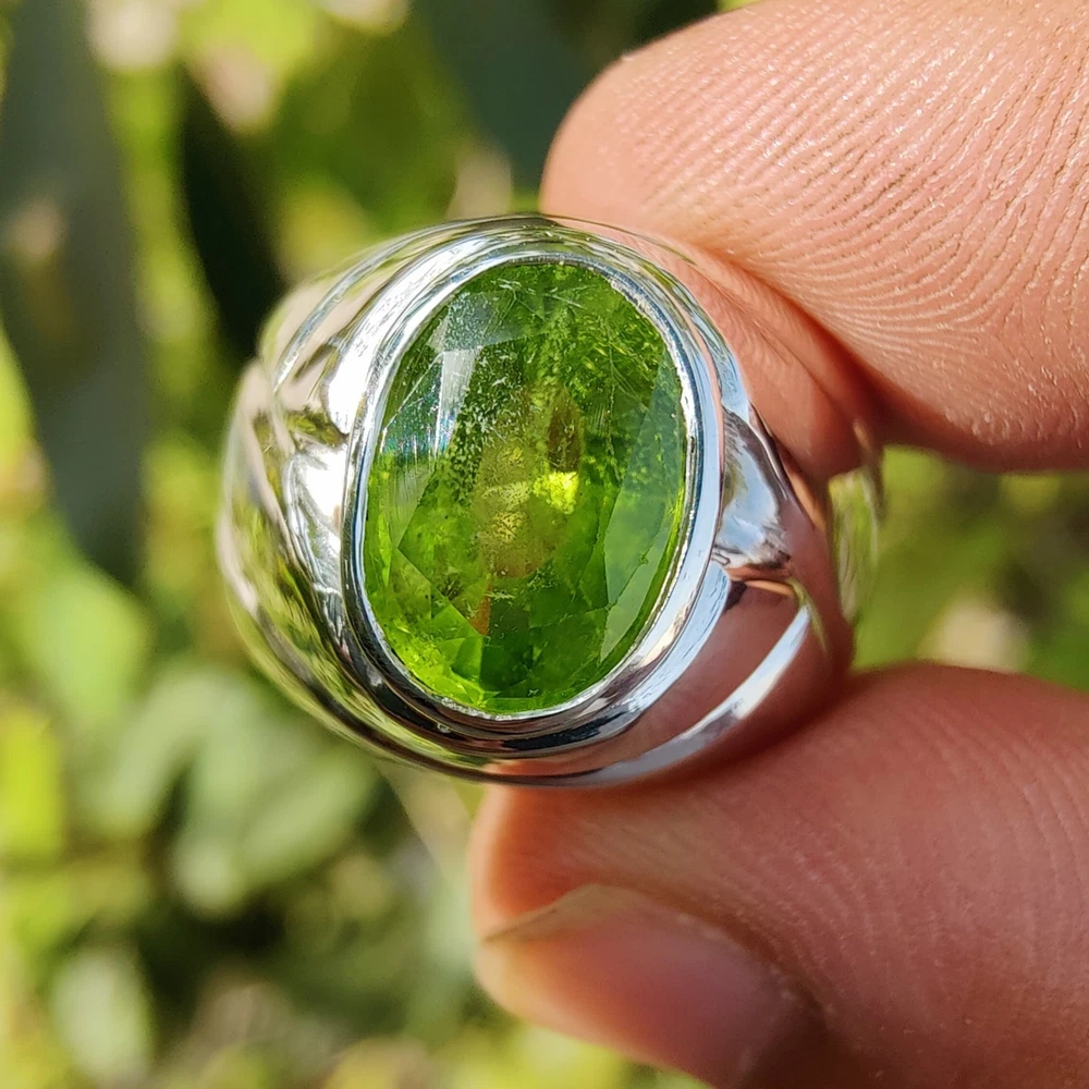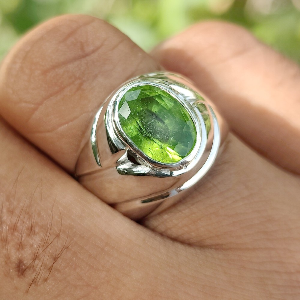 Natural Peridot Ring For Men, Green Peridot Handmade Ring With 925 Sterling Silver Gemstone: Peridot Metal: 925 Sterling Silver Stone Type: High Quality Natural Delivery: Worldwide via UPS, FedEx, DPD UK, Aramex