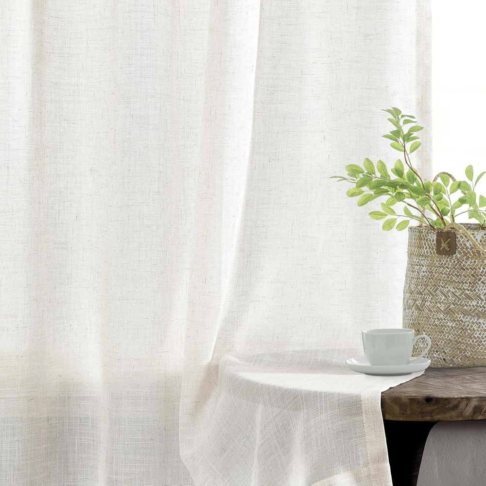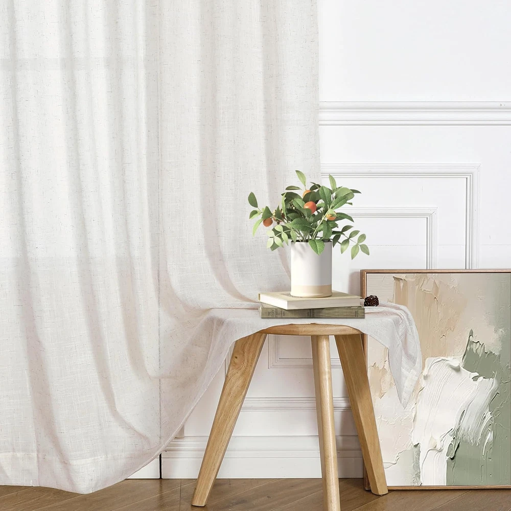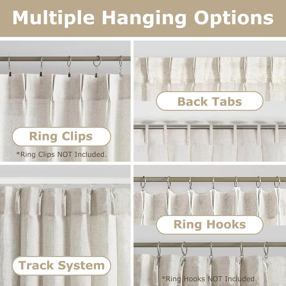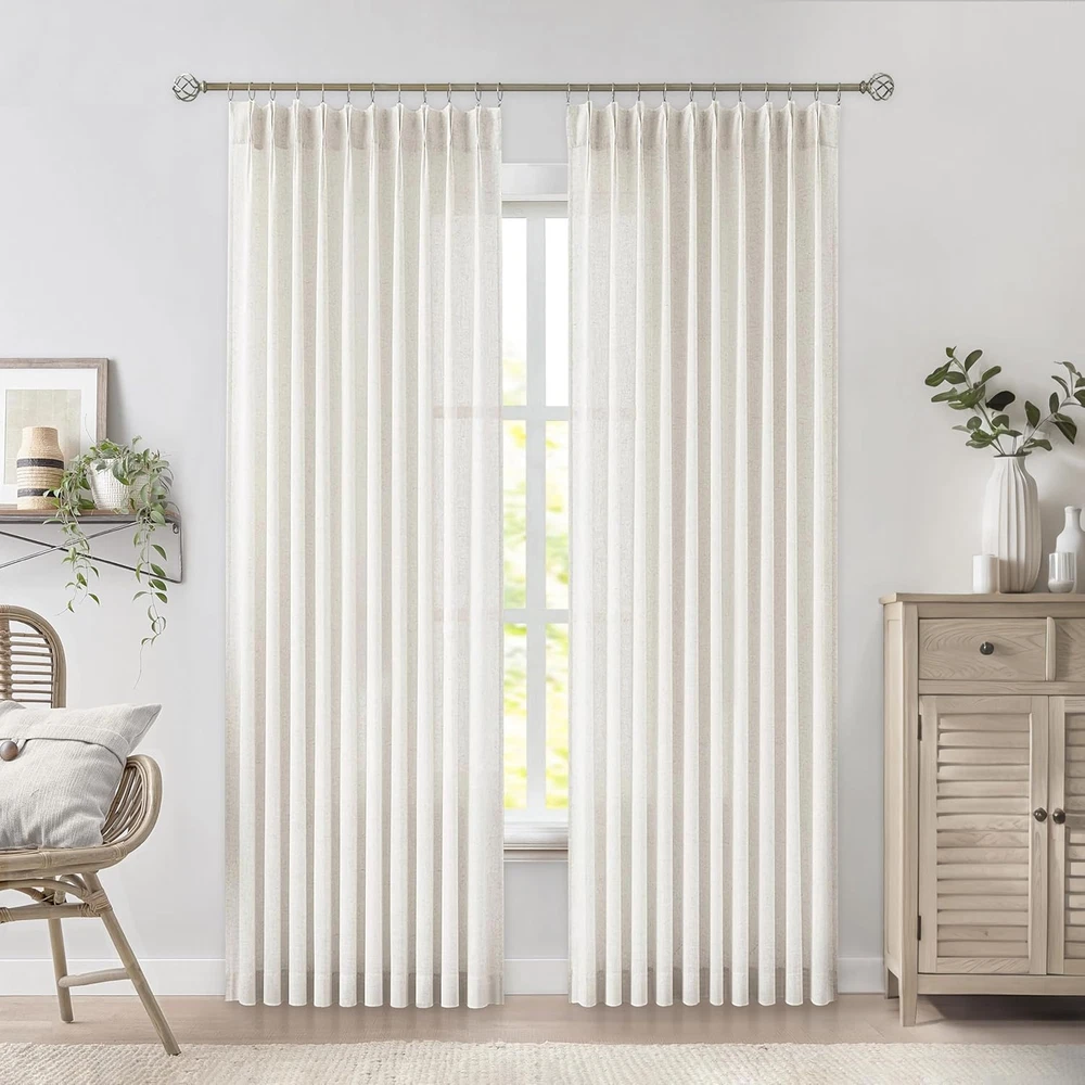 Natural Pinch Pleat Sheer Curtains 84 Inches Long,Rustic Linen Drapes for Living