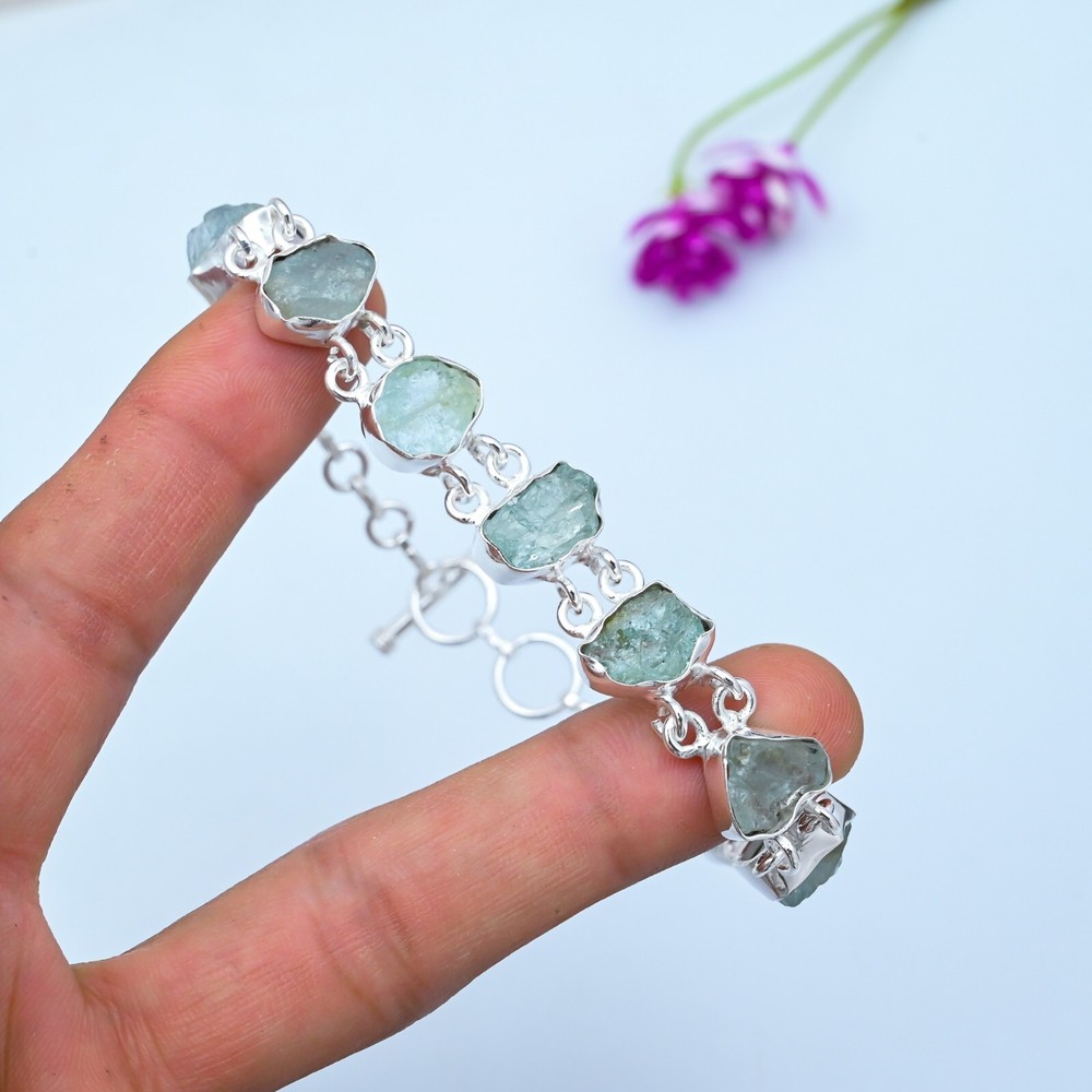 HomeNatural Raw Aquamarine Bracelet in 925 Sterling Silver Jewelry Gift