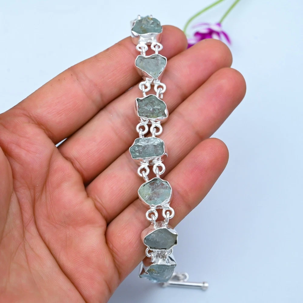Natural Raw Aquamarine Bracelet in 925 Sterling Silver Jewelry Gift