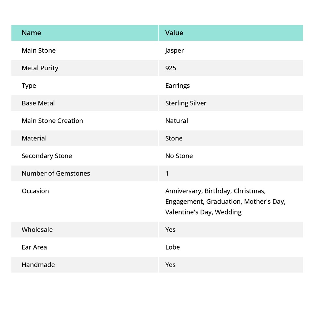 Gemstone Clarity Grade: Eye Clean Main Stone Treatment: Not Enhanced Main Stone Color: Pink Country of Origin: India Metal: Sterling Silver Main Stone: Jasper Wholesale: Yes Country/Region of Manufacture: India Cut Grade: Fair Secondary Stone: No Stone Main Stone Shape: Same As Picture Stone-Size: 10X17mm Number of Gemstones: 1 Number of Diamonds: 0 Type: Earrings Main Stone Creation: Natural Ear Area: Lobe Colored Diamond Intensity: Not Applicable Style: Drop & Dangle Weight: 4.7 gm Base Metal: Sterling Silver Theme: Art, Beach, Beauty, Family & Friends, Love, Luck Fastening: Fish Hook Features: Engraved Color: Pink Closure: French Wire Handmade: Yes Metal Purity: 925 Diamond Clarity Grade: Not Applicable ProductName: Earrings Diamond Color Grade: Not Applicable Signed: Yes gtin13: does not apply Era: Undated Certification: Yes Shape: Same As Picture Material: Stone Brand: Unbranded UPC: does not apply Occasion: Anniversary, Birthday, Christmas, Engagement, Graduation, Mother's Day, Valentine's Day, Wedding Setting Style: Channel-Set Total Carat Weight: 50 Carat Above Vintage: No Main Stone Size: 10X17mm